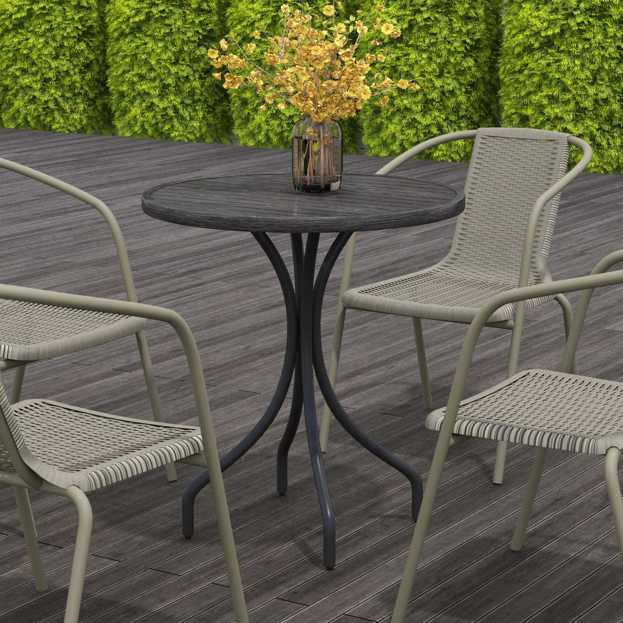 Enhance your outdoors with this SUNVISTA end table. Slatted tabletop is stylish and practical, preventing water building up and quick drying. The galvanised steel frame, with a powder-coated finish, means a strong and supportive core. This round garden table is suitable for plenty of occasions.