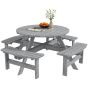 This SUNVISTA wooden bench set is a great addition to any outdoor setting, offering the ability to accommodate up to 8 people. Circular design gives lots of room for comfortable movement and enjoyment of the space. A precision-cut hole in the middle for parasol enables shade options in summer. Fir wood construction for added strength and stability with smooth edges and weight capacity of 227 kg for table and 227 kg for bench.