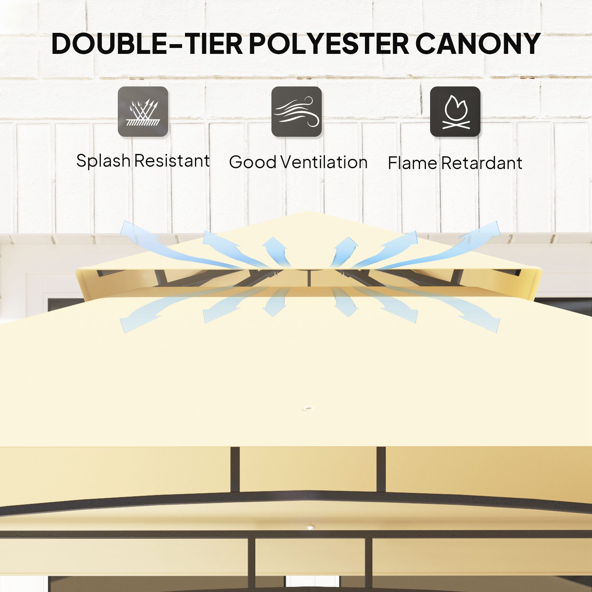 SUNVISTA 8' x 5' Grill Gazebo, Double Tiered BBQ Gazebo Shelter Canopy with LED Lights, 2 Side Shelves, Hooks, Beige