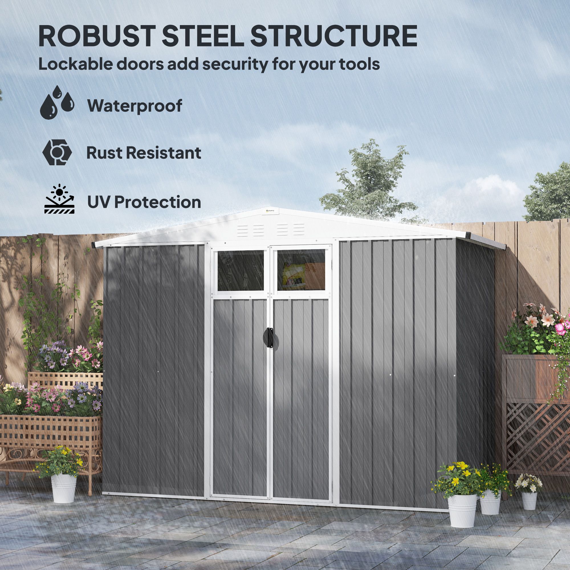 SUNVISTA 8x4ft Metal Garden Shed with Lockable Door, Window & 4 Vents, Waterproof Steel Storage Shed, Light Grey