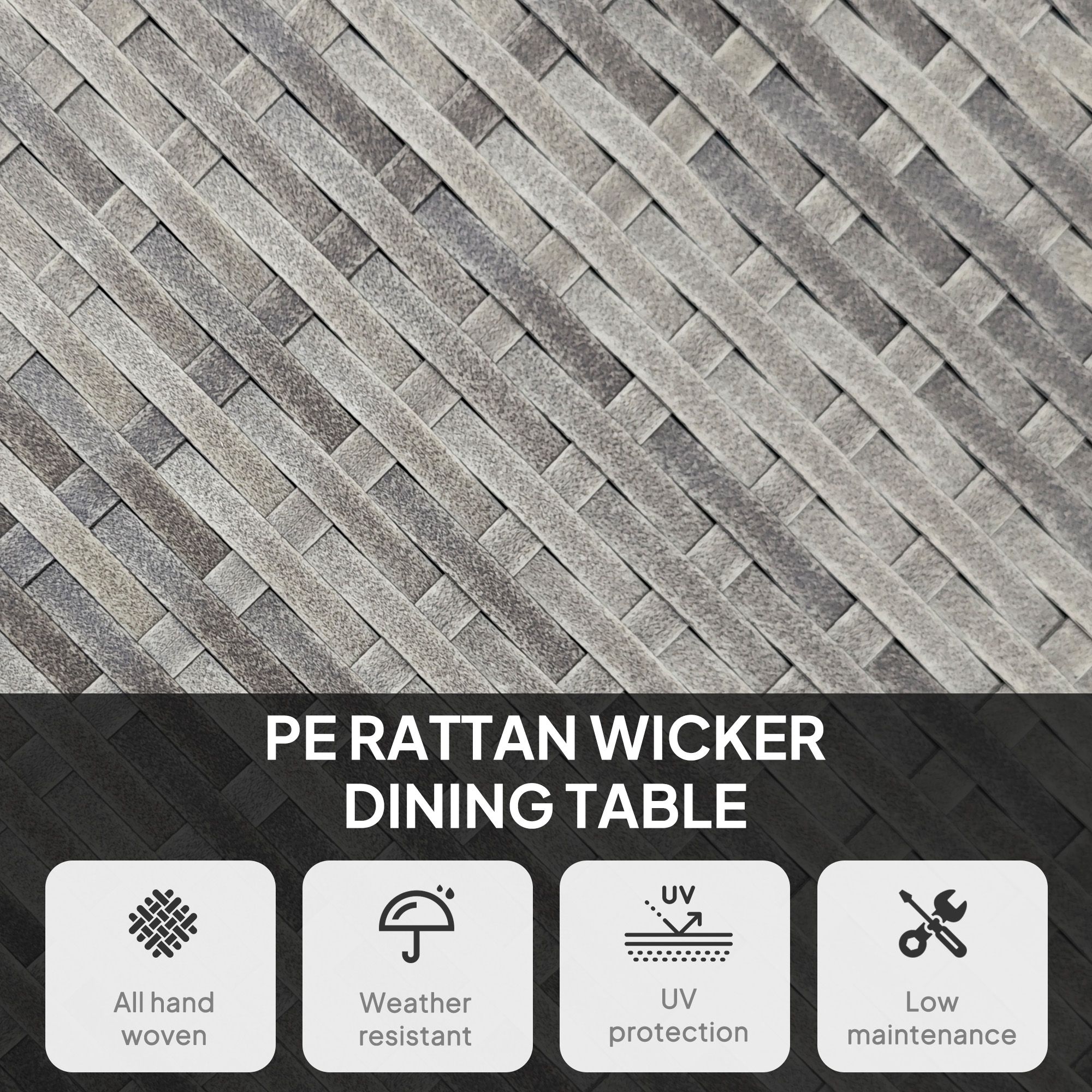 SUNVISTA 90cm Four-Person Wood-Effect Rattan Table - Grey