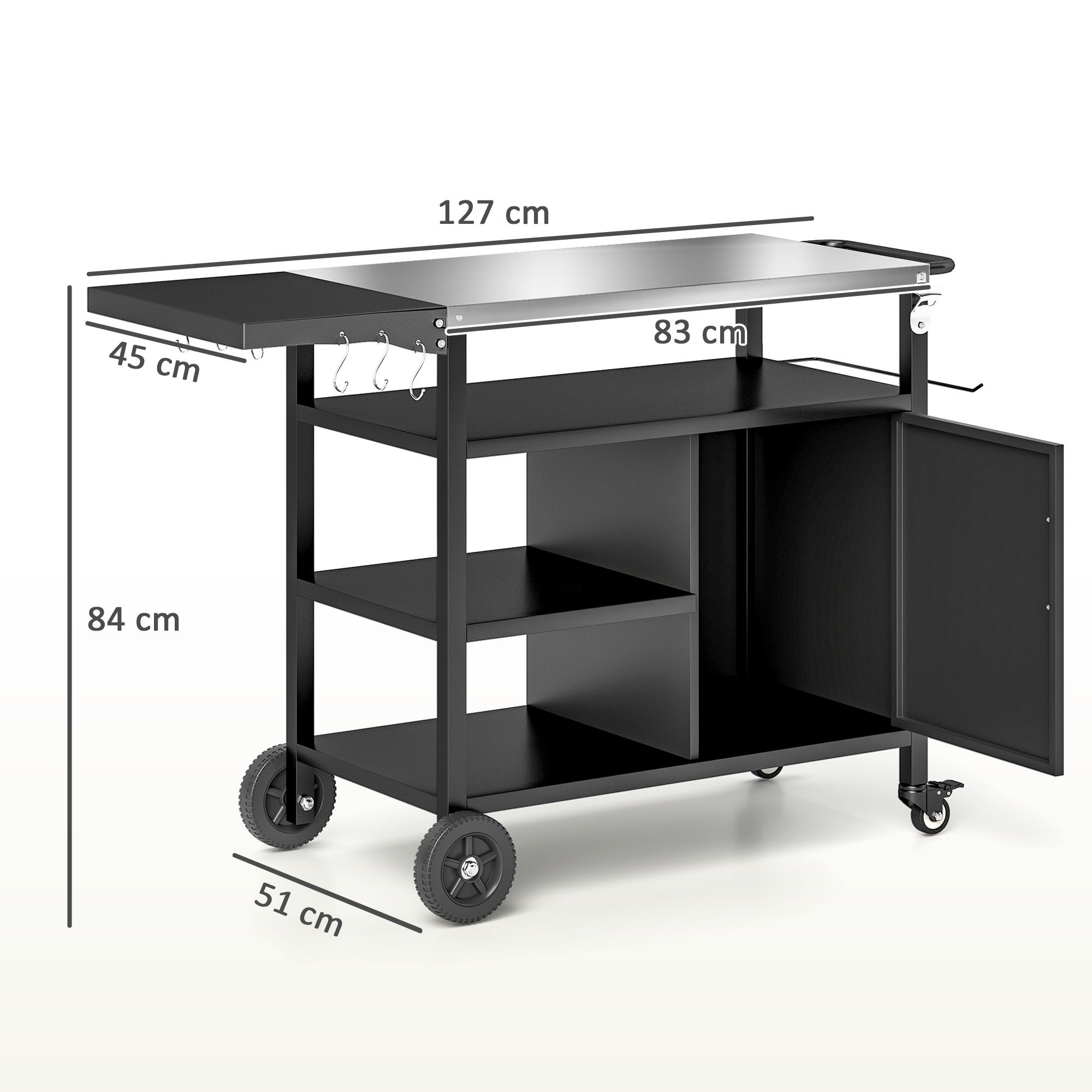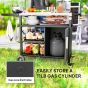SUNVISTA BBQ Trolley, Foldable Side Table, Stainless Steel Top, Wheels, Outdoor Grill Cart, Black