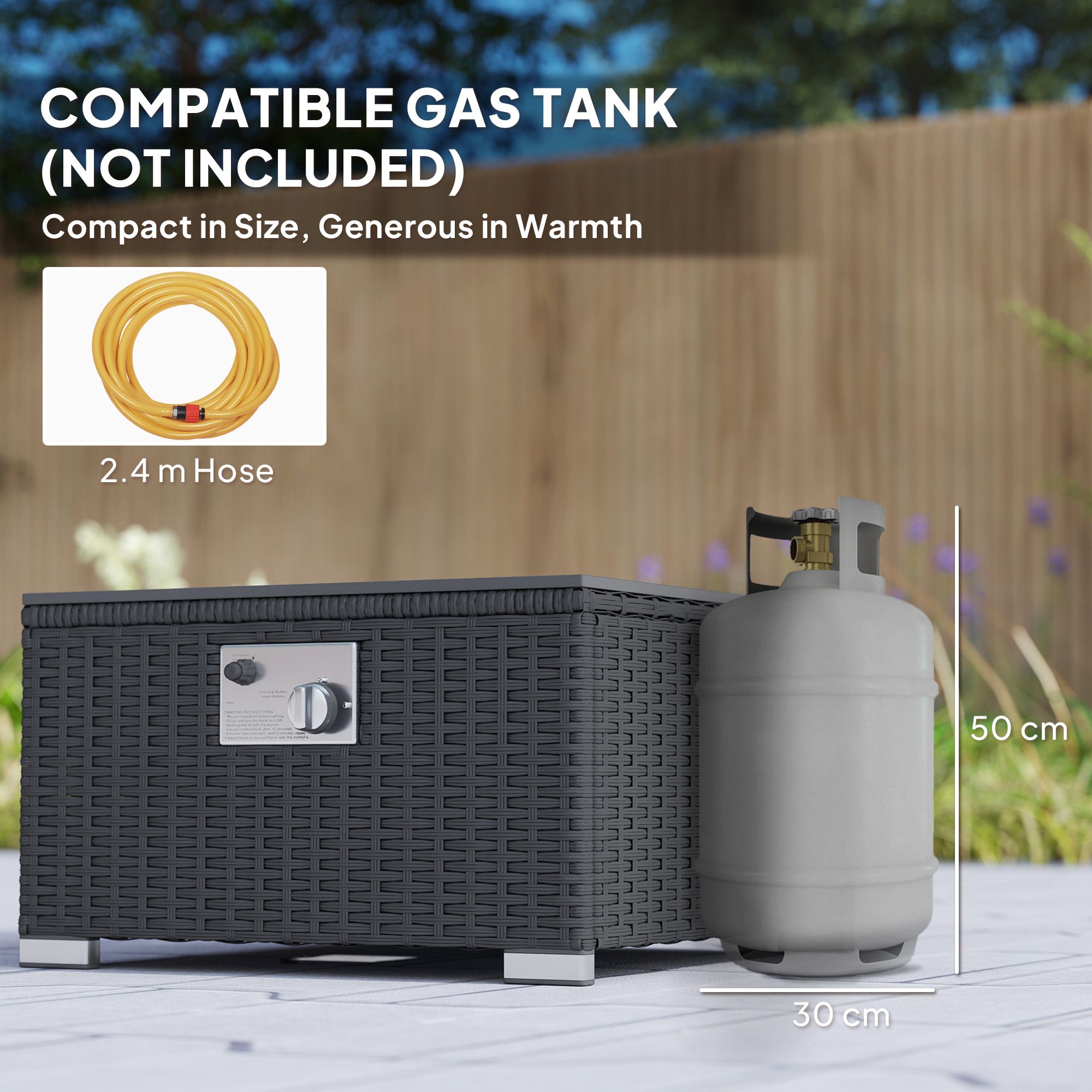 SUNVISTA Five Piece Rattan Garden Furniture Set with Gas Fire Pit Table and Footstool - Black and Cream White