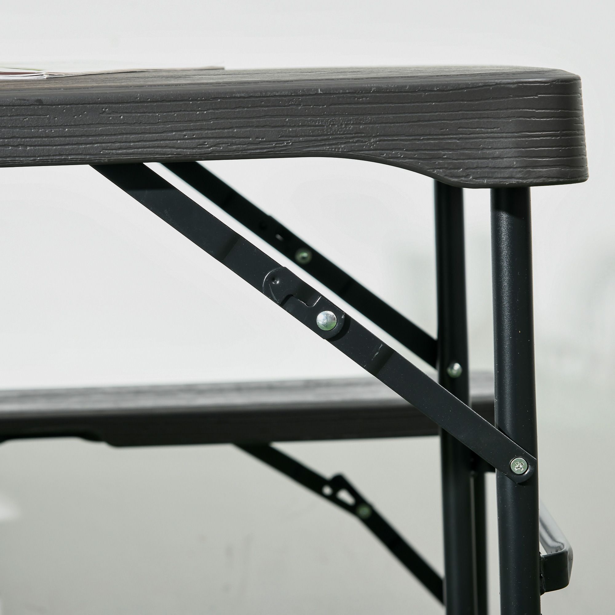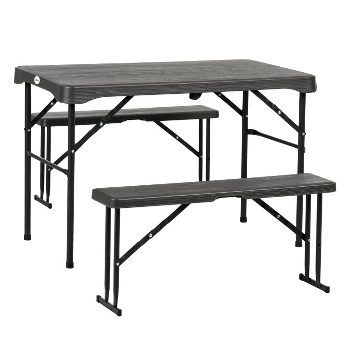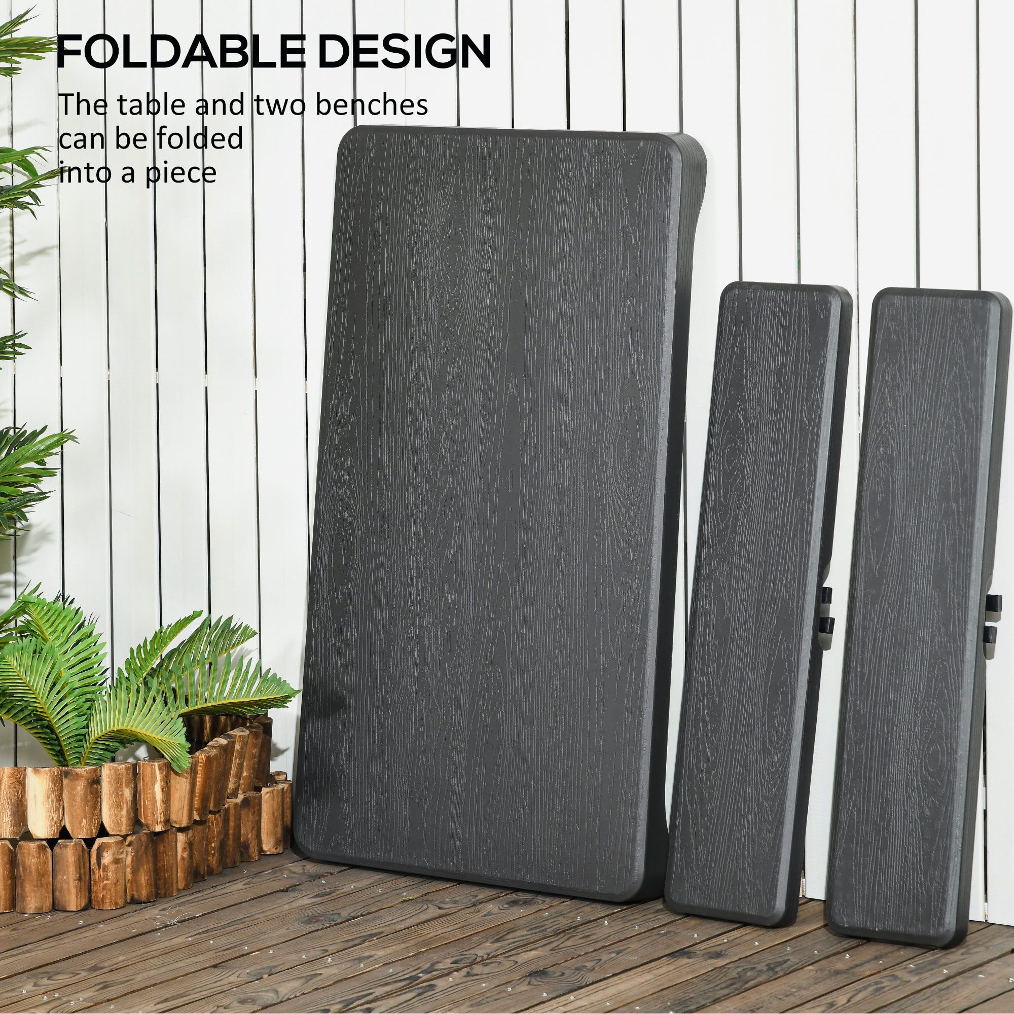 SUNVISTA Folding Picnic Table with 2 Benches, 3-Piece Portable Garden Furniture Set for 4, Dining Table Set with Plastic Top, Steel Frame, Dark Grey