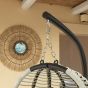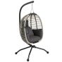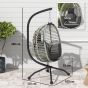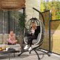 SUNVISTA Outdoor Swing Chair with Thick Padded Cushion, Patio Hanging Chair with Metal Stand, Foldable Basket, Cup Holder, Dark Grey