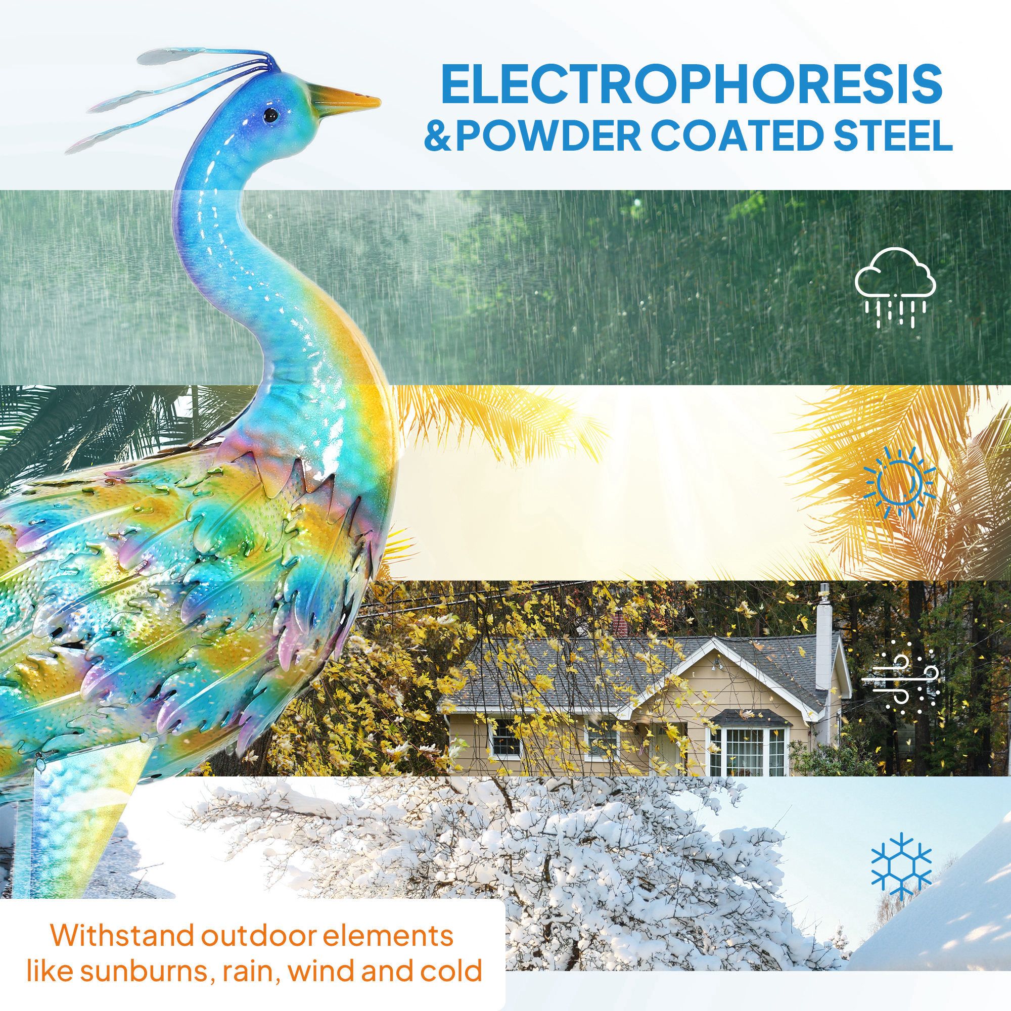 SUNVISTA Peacock Garden Statue, Standing Garden Ornament, Metal Garden Gift with Stakes for Patio Pond Landscape Decoration, Multi-Colour
