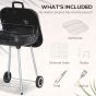 SUNVISTA Portable BBQ Charcoal Grill with 2 Wheels and Cooking Utensils, Smoker Grill with Lid for Outdoor Barbecues, Camping, Picnic, Courtyard