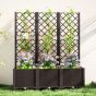 SUNVISTA Raised Garden Bed with Trellis, Plastic Planter Box with Drainage Holes and Drain Plugs for Climbing Plants, Vegetables, Flowers, Brown - Wide