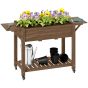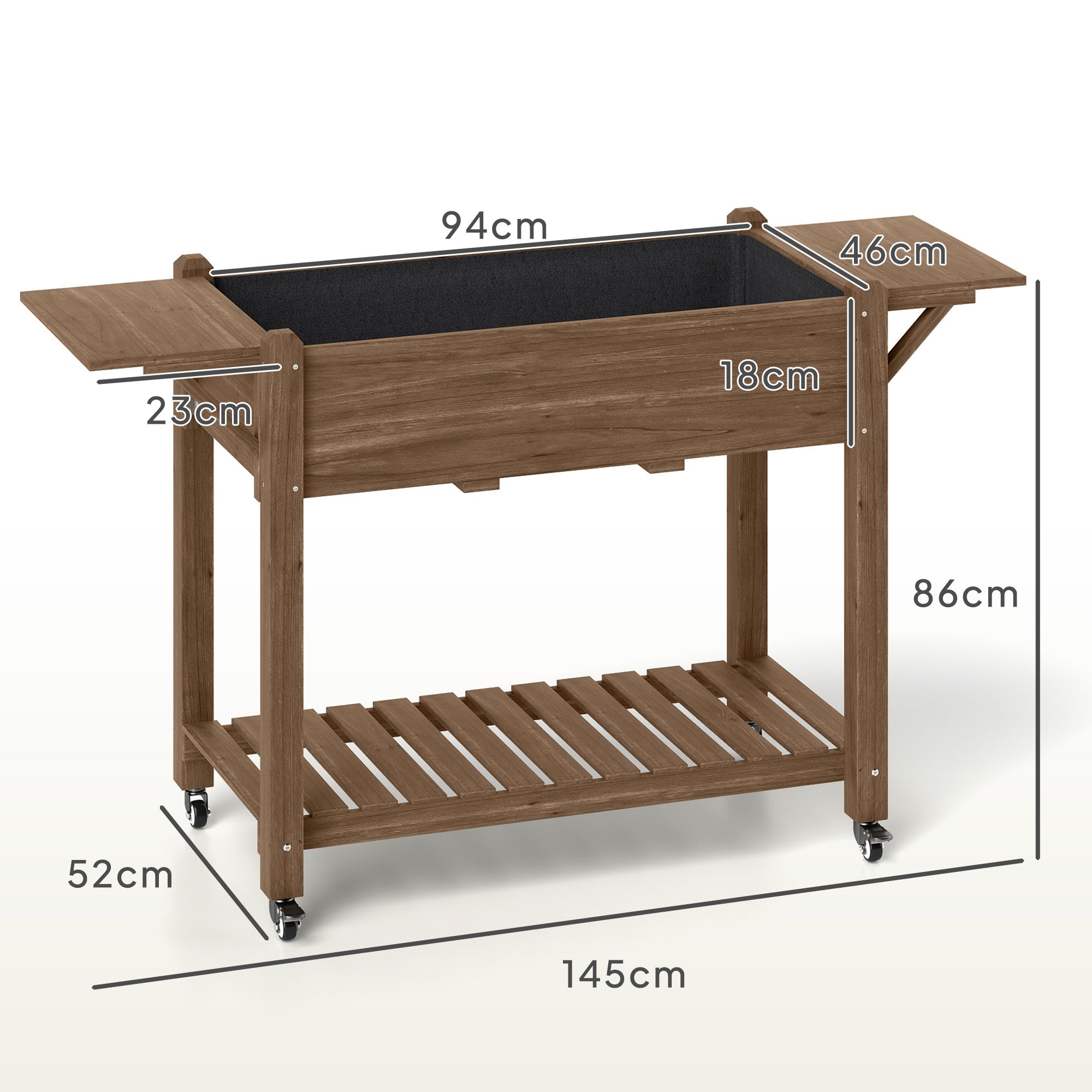 SUNVISTA Raised Garden Bed, Wooden Elevated Planter Box with Lockable Wheels, Side Tables and Bottom Shelf, Carbonised