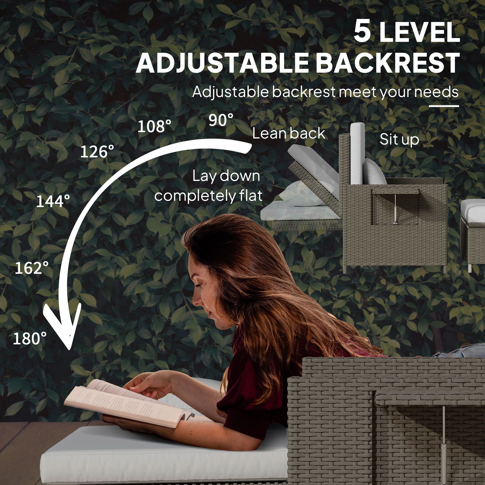 SUNVISTA Rattan Day Bed, with Footstool - Light Grey