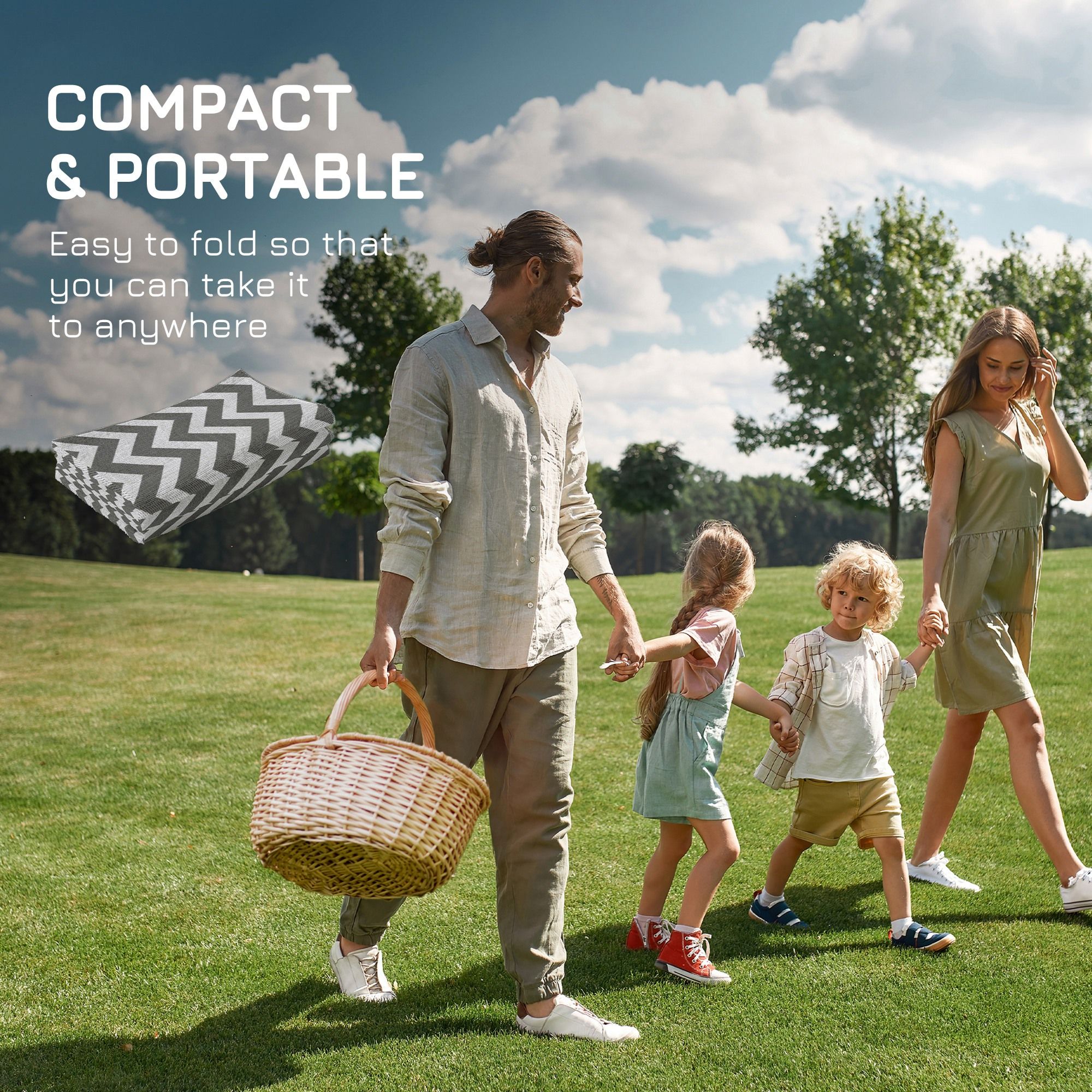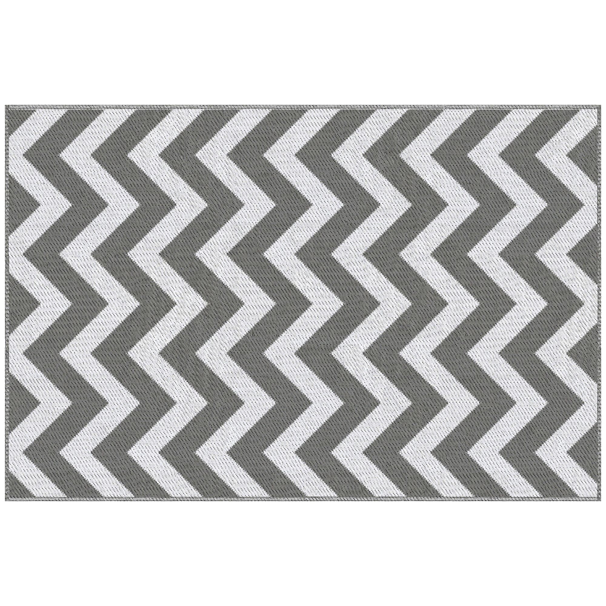 SUNVISTA Reversible Outdoor Rug, 1.2 x 1.8m Patio Carpet, Waterproof Plastic Rug for Garden, Deck, Picnic, Beach, Camping, Grey and White