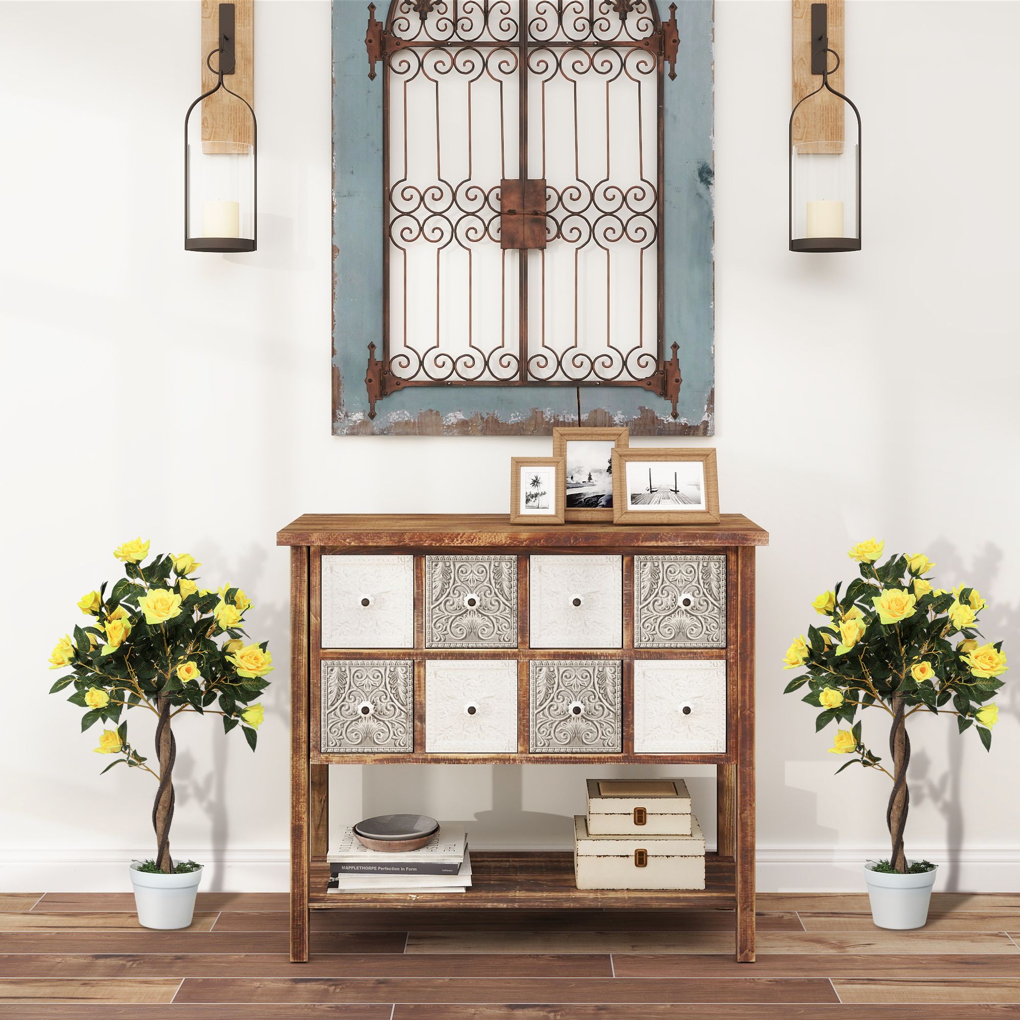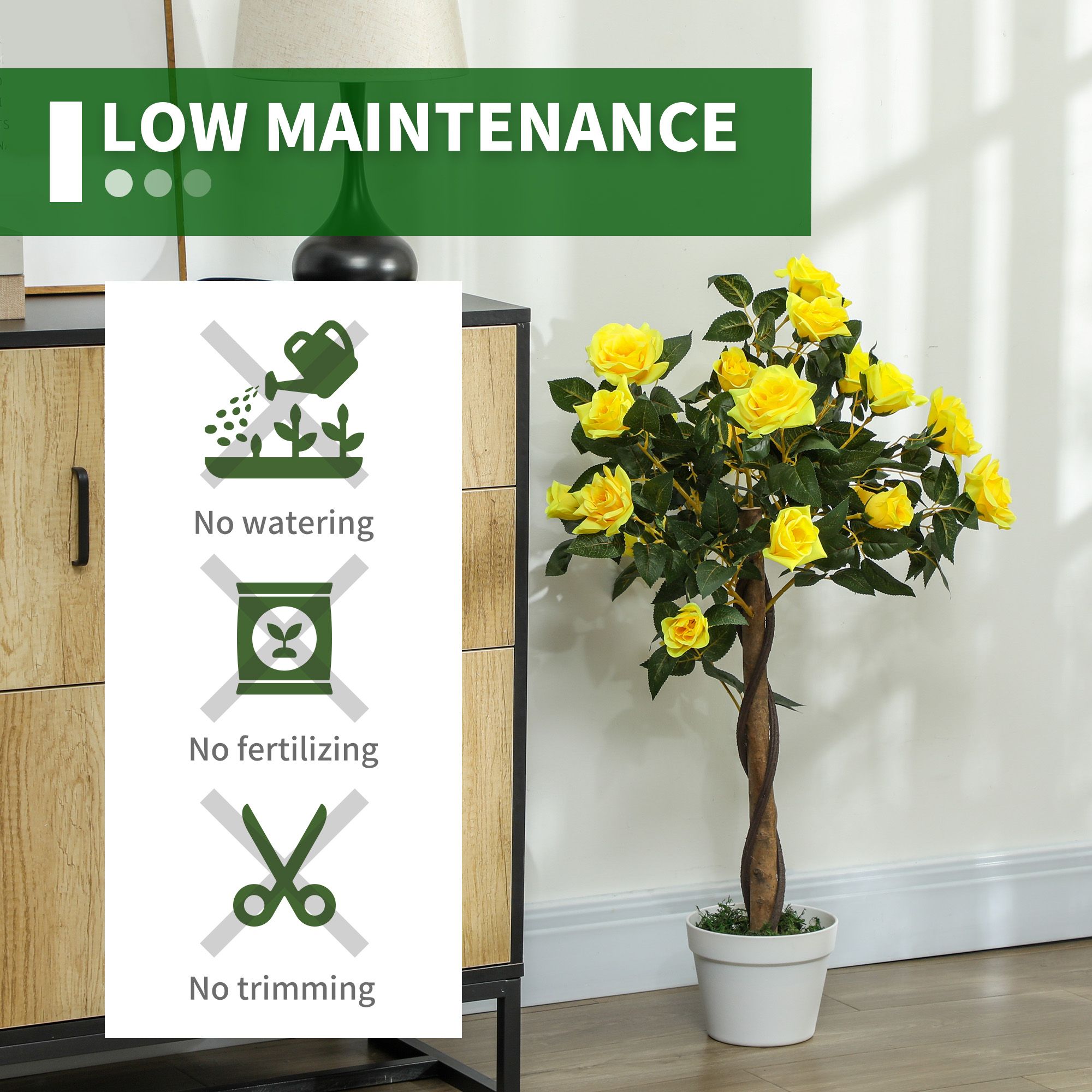 SUNVISTA Set of 2 Artificial Plants White Rose Floral in Pot, Fake Plants for Home Indoor Outdoor Decor, 90cm, Yellow