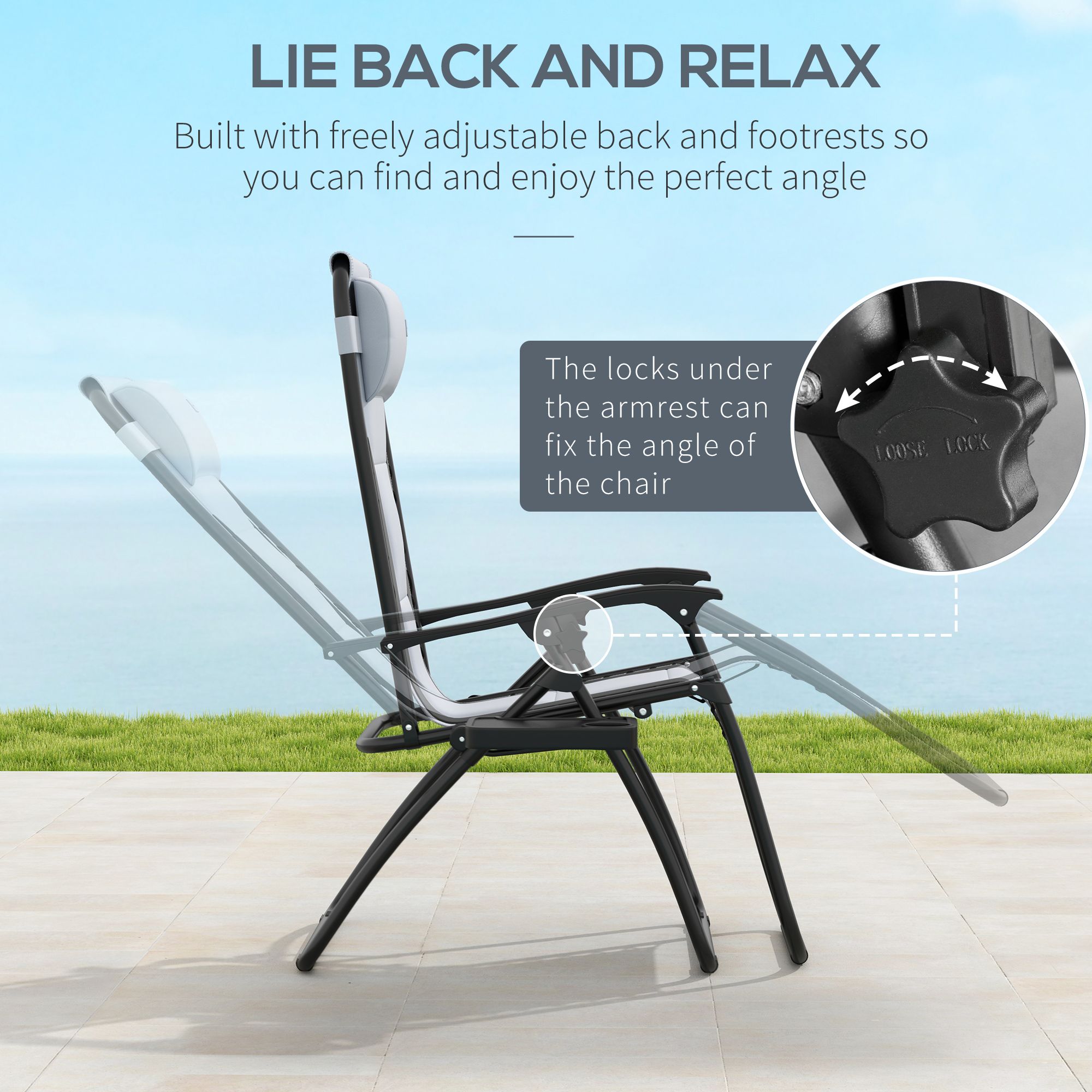 SUNVISTA Set of 2 Zero Gravity Loungers with Cushion, Cup Holder & Headrest, Reclining Garden Chairs, Grey