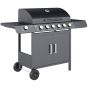 Get friends together and enjoy delicious BBQ food with this SUNVISTA gas grill. It features six main burners, with and a side cooking plate with individual gas burner; controlled by piezo ignition for easy, separate operation. The large 2646cm² grilling area means plenty of cooking space. An easy-to-read thermometer is connected to the lid. Two shelves on both sides and cupboard provide storage, complete with two wheels to move easily.