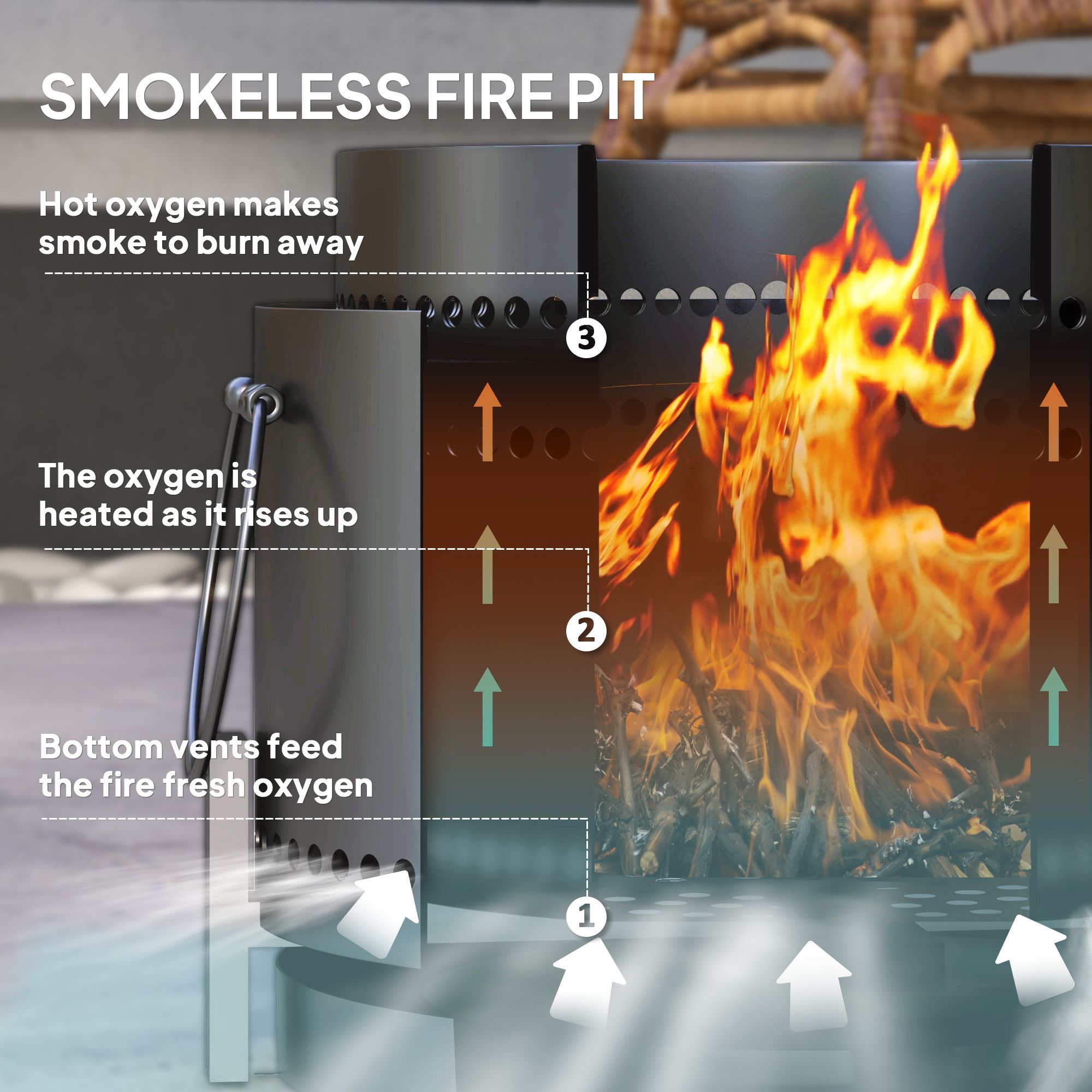 SUNVISTA Smokeless Fire Pit with Ash Catcher, 37cm Portable Wood Burning Firepit with Poker for Garden Camping Bonfire Party, Metal, Dark Grey