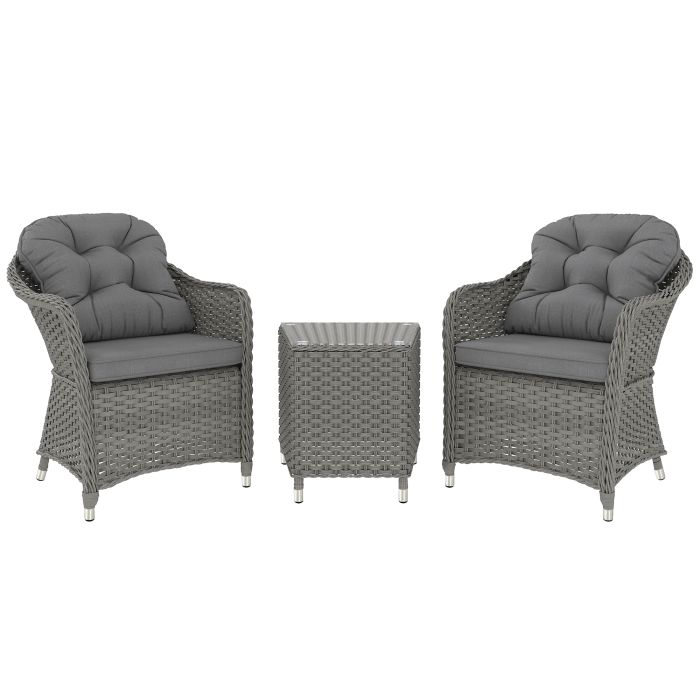 SUNVISTA Three-Piece Super Padded Rattan Set - Light Grey