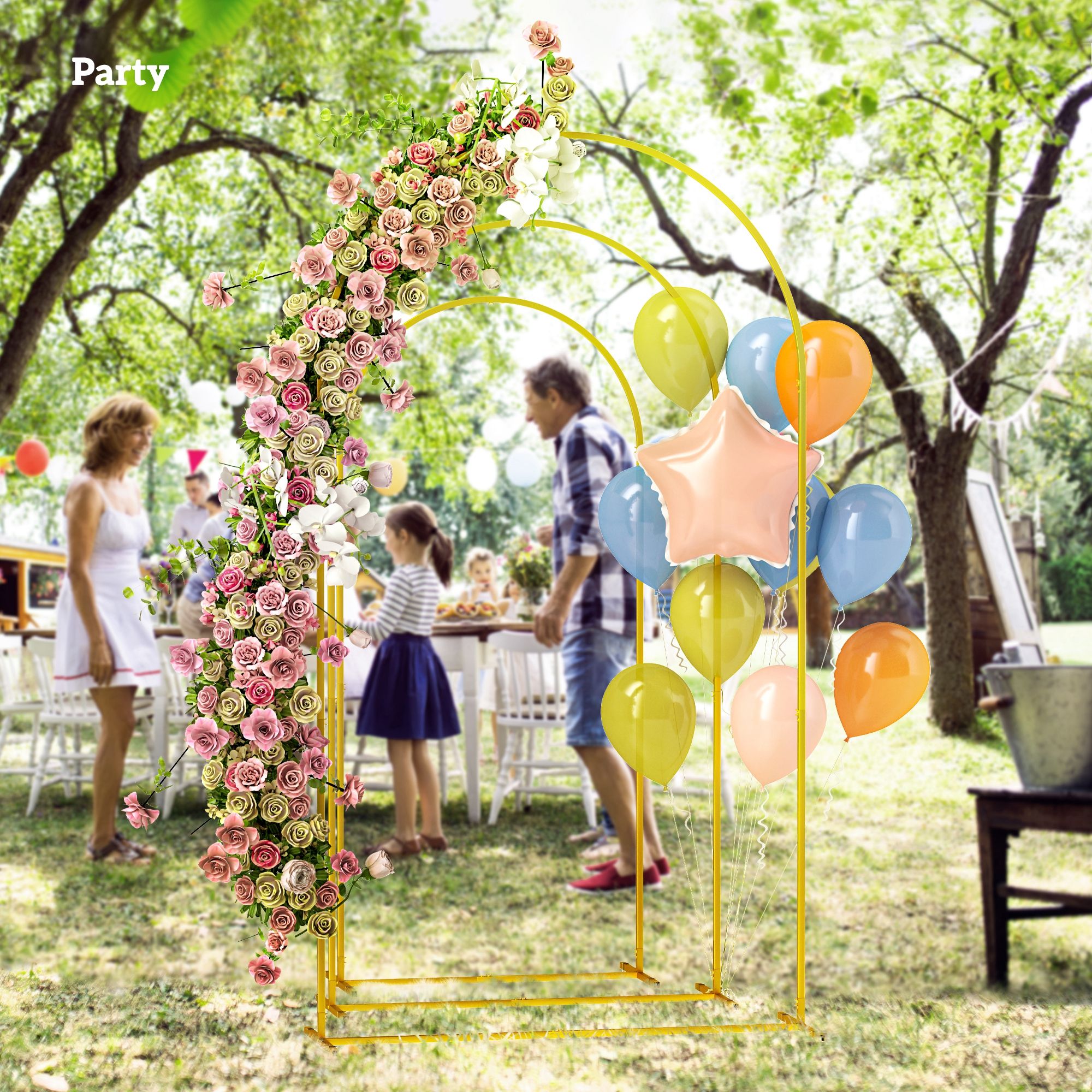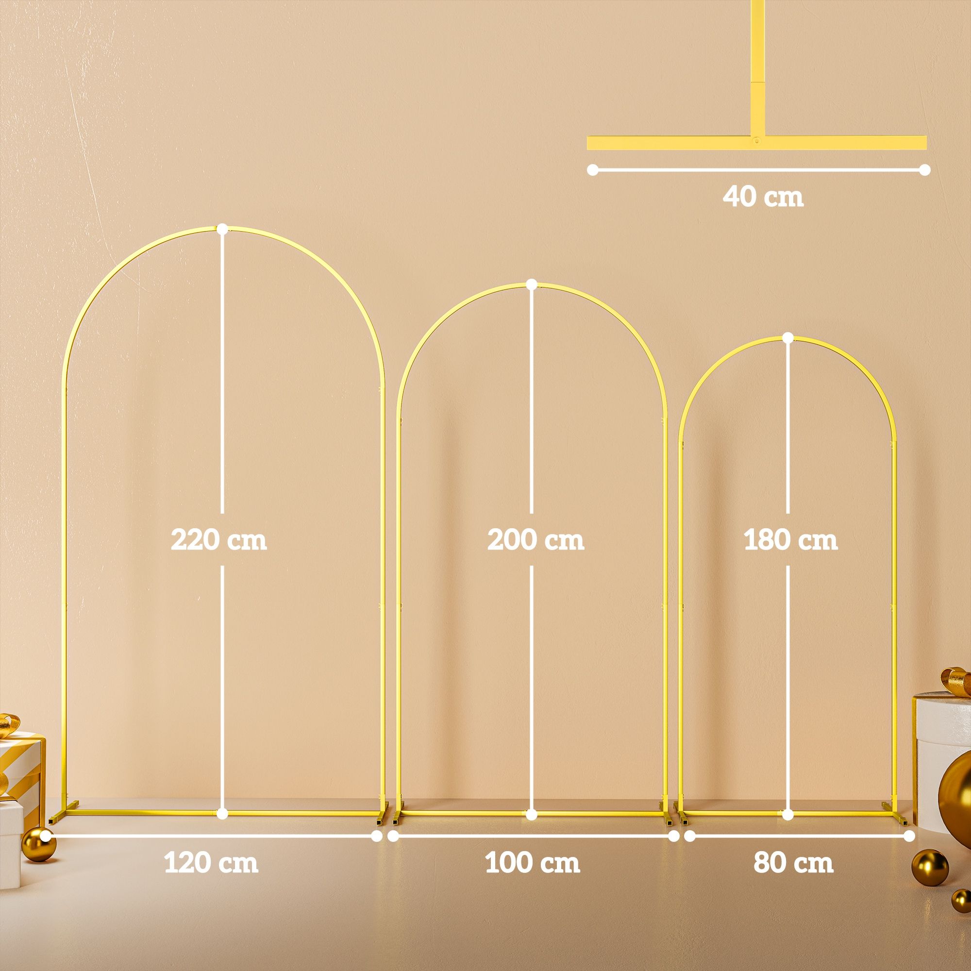 SUNVISTA Wedding Arch Frame Set, 2.2, 2, 1.8 m Metal Arch Backdrop Stand Set of 3, Balloon Arch Stand Set for Birthday Party, Gold Tone