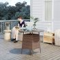 SUNVISTA Wicker Garden Rattan Table, Patio Furniture Outdoor Coffee Table with Umbrella Hole and Tempered Glass Top, Brown
