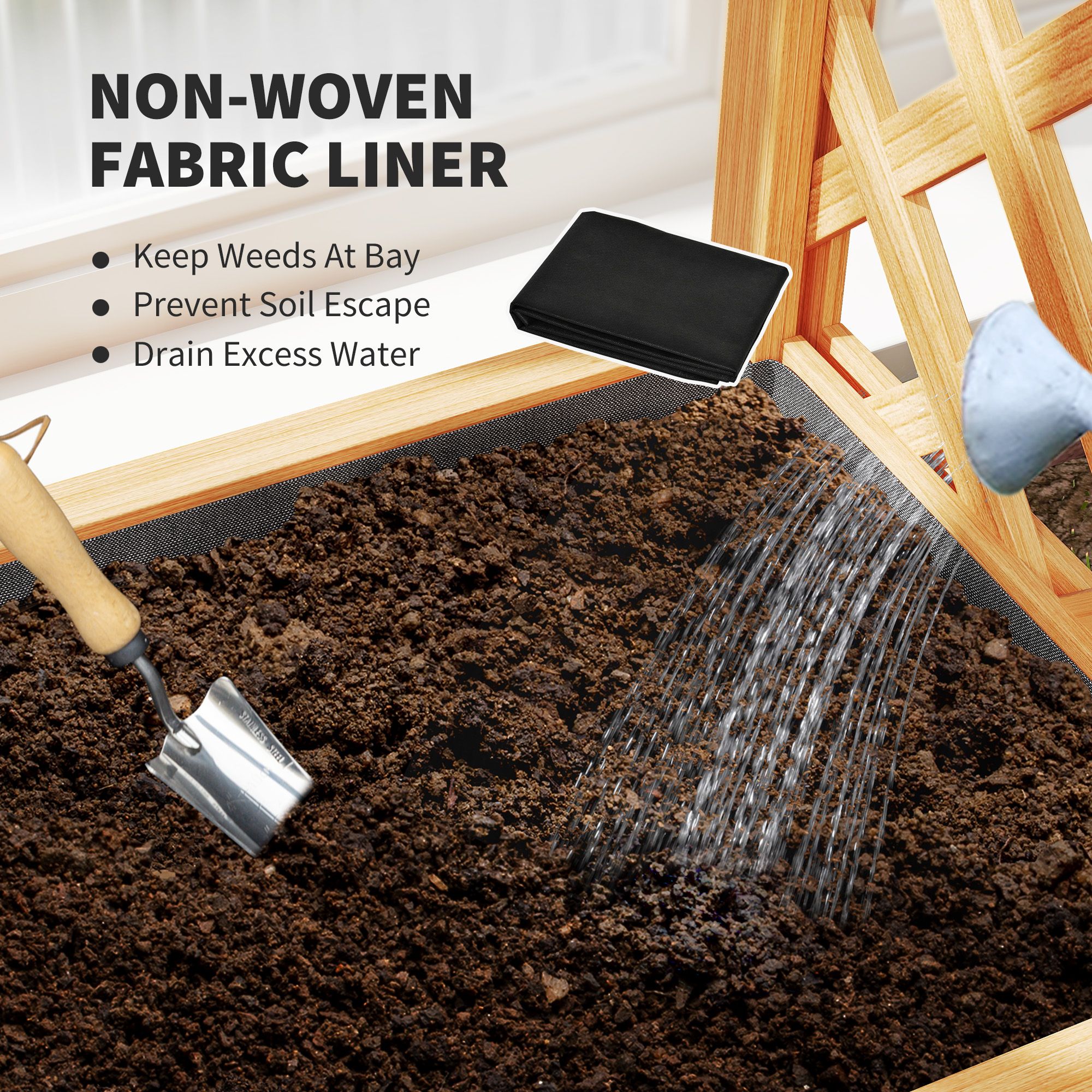 SUNVISTA Wooden Raised Garden Bed with Trellis, Liner, Drainage Holes, for Vine Climbing Plants, Flowers, 83 x 36 x 145 cm