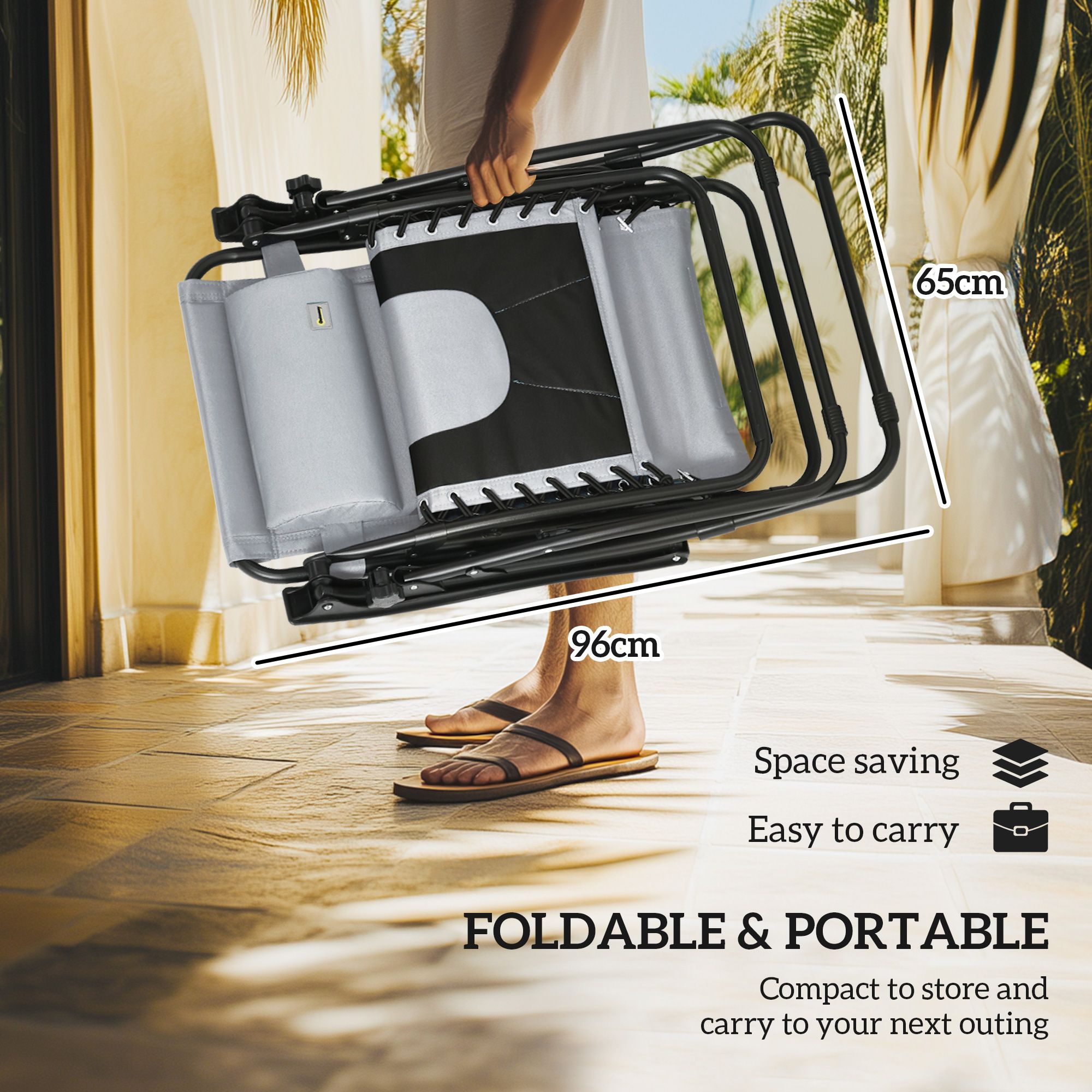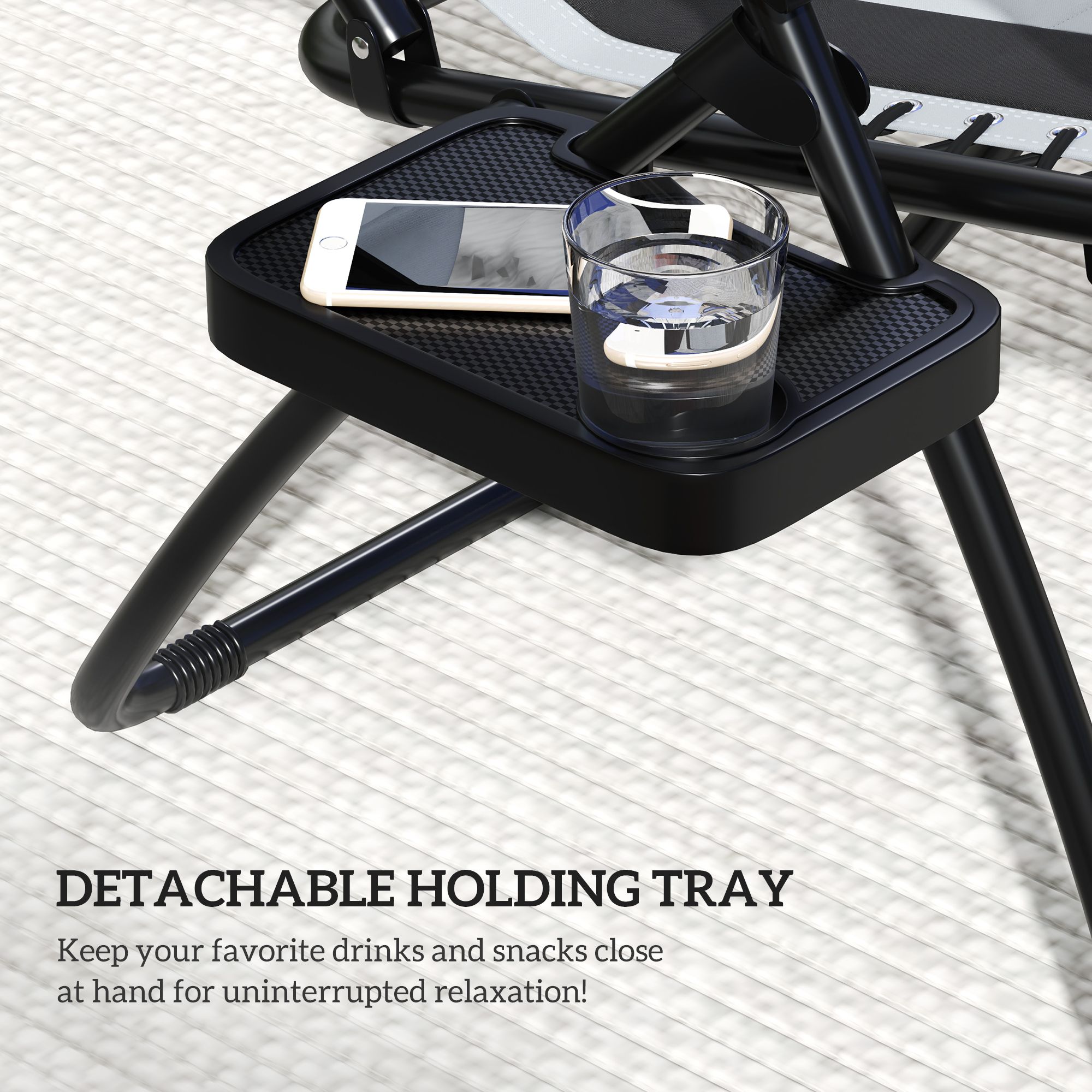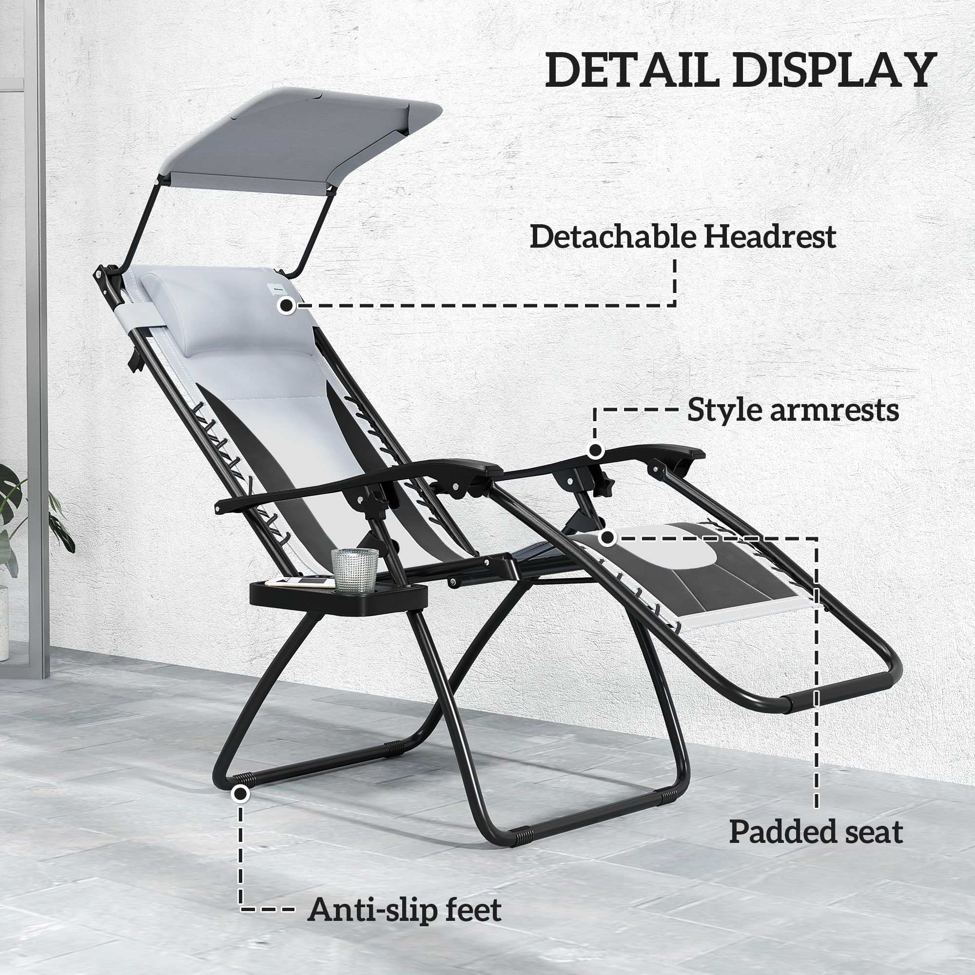 SUNVISTA Zero Gravity Lounger Chair Set of 2, Folding Reclining Patio Chair with Shade Cover, Padded Seat, Cup Holder, Light Grey