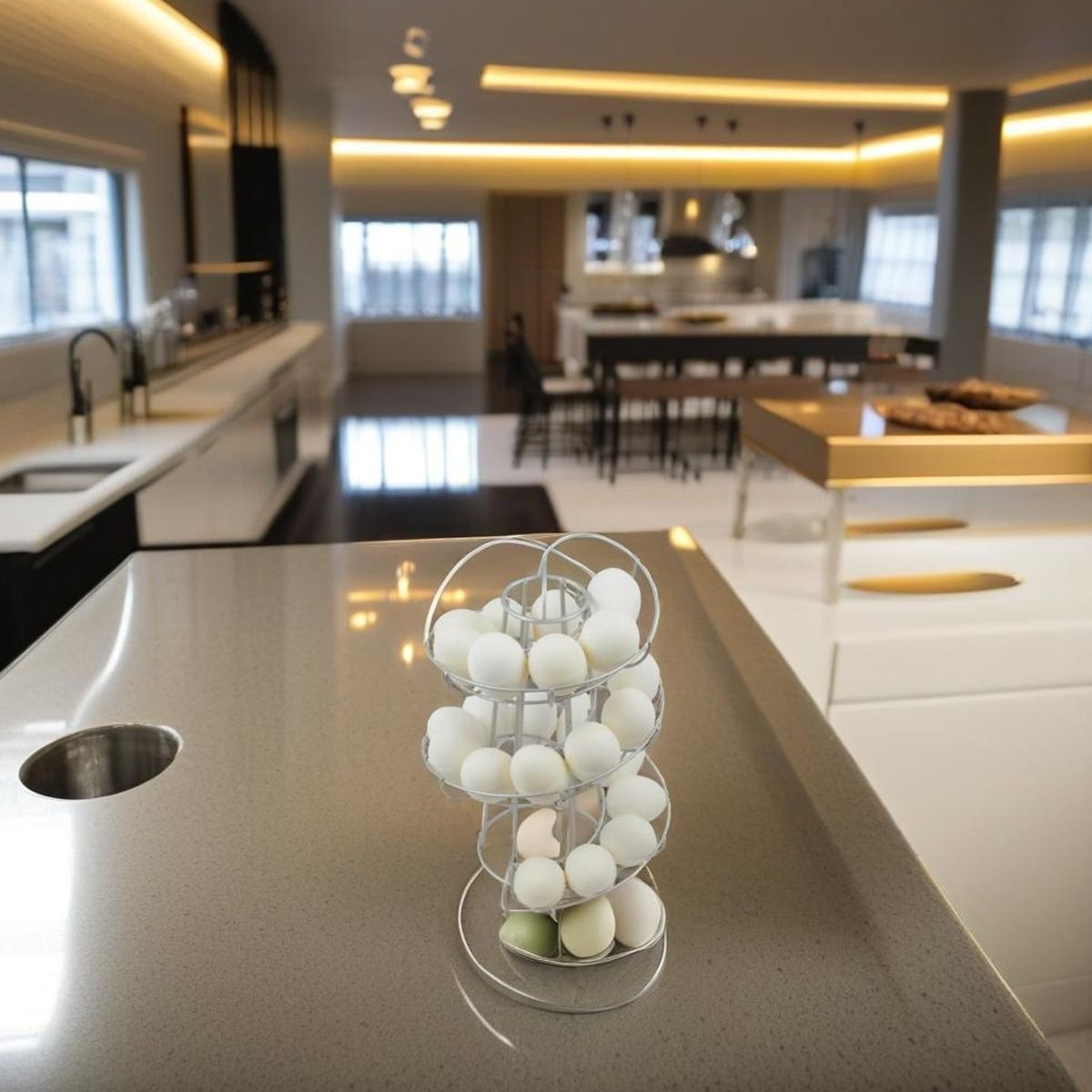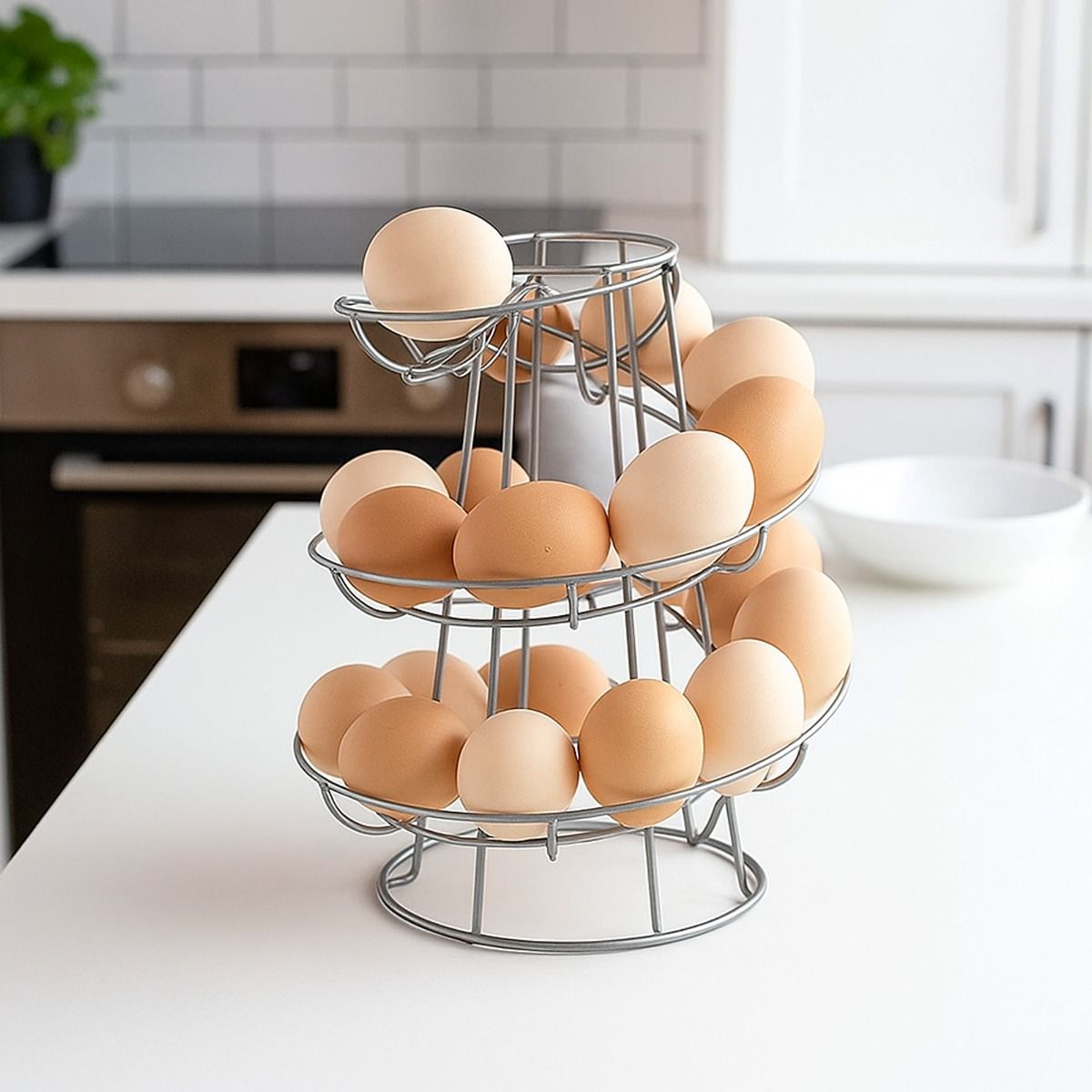 SWANTON Egg Holder Spiral Skelter Kitchen Stand Holds 12-18 Eggs - Silver
