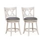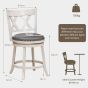 Swivel 64cm Hand-Antiqued Stool Set of 2 with Wider Padded Seat-White-64 cm