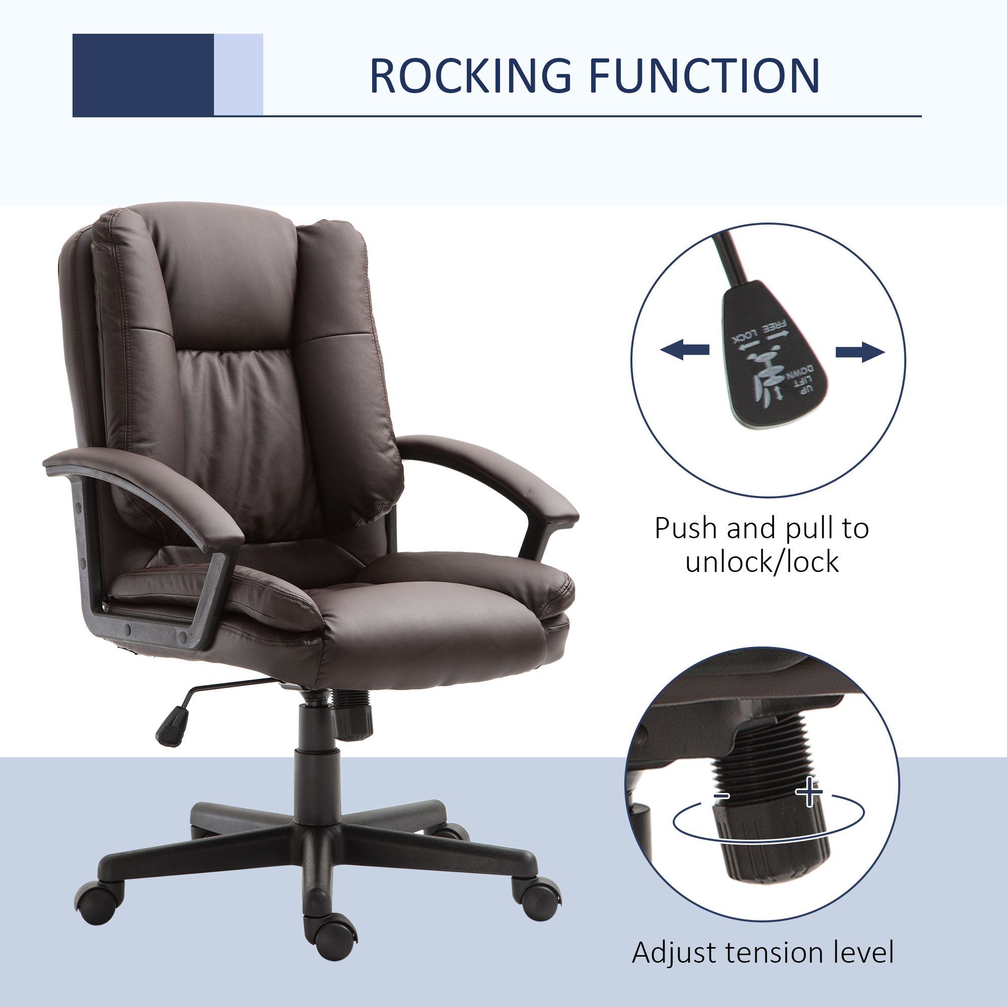 Swivel Executive Office Chair Mid Back Faux Leather Computer Desk Chair for Home with Double-Tier Padding, Arm, Wheels, Brown