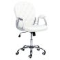 This luxurious chair encapsulates modernity with a vintage twist. Upholstered in durable faux leather, the chair boasts a button tufted backrest with diamond stitching for an elegant finish. The curved, padded armrests provide comfort and complement the white upholstery. An inbuilt swivel mechanism and gas lift allows for a full adjustment tailored to your body. It is a versatile option for different environments - from home offices to children rooms. Details: Color: White, Black, Silver. Main material: Faux Leather. Additional material: Iron, Plywood, Foam, Nylon. Material Composition: 100% PU Leather Weight: 12 Assembly: Full Assembly Required Weight Capacity: 120 Seat Height: 46-56