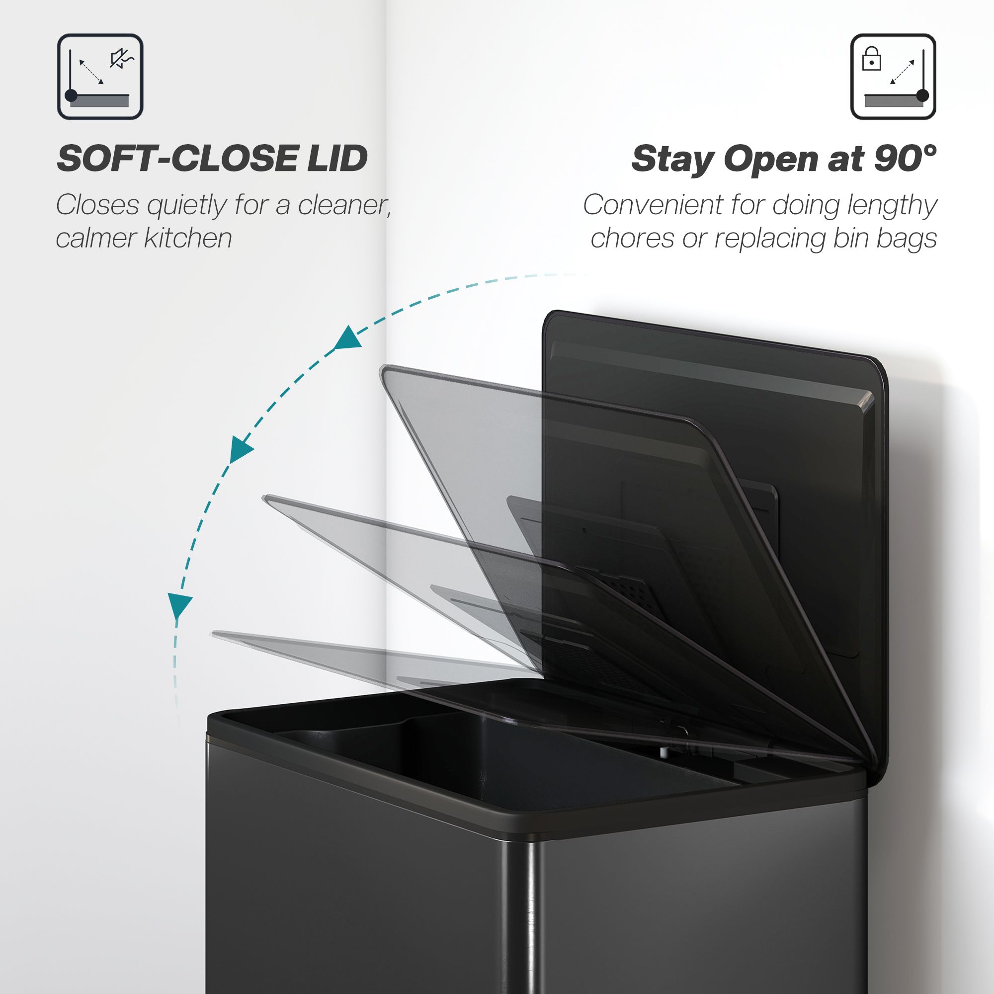SYLVRENN 45L Rubbish Bin with Soft Close, Stay Open Lid, Removable Inner Bucket and Odor Control - Black