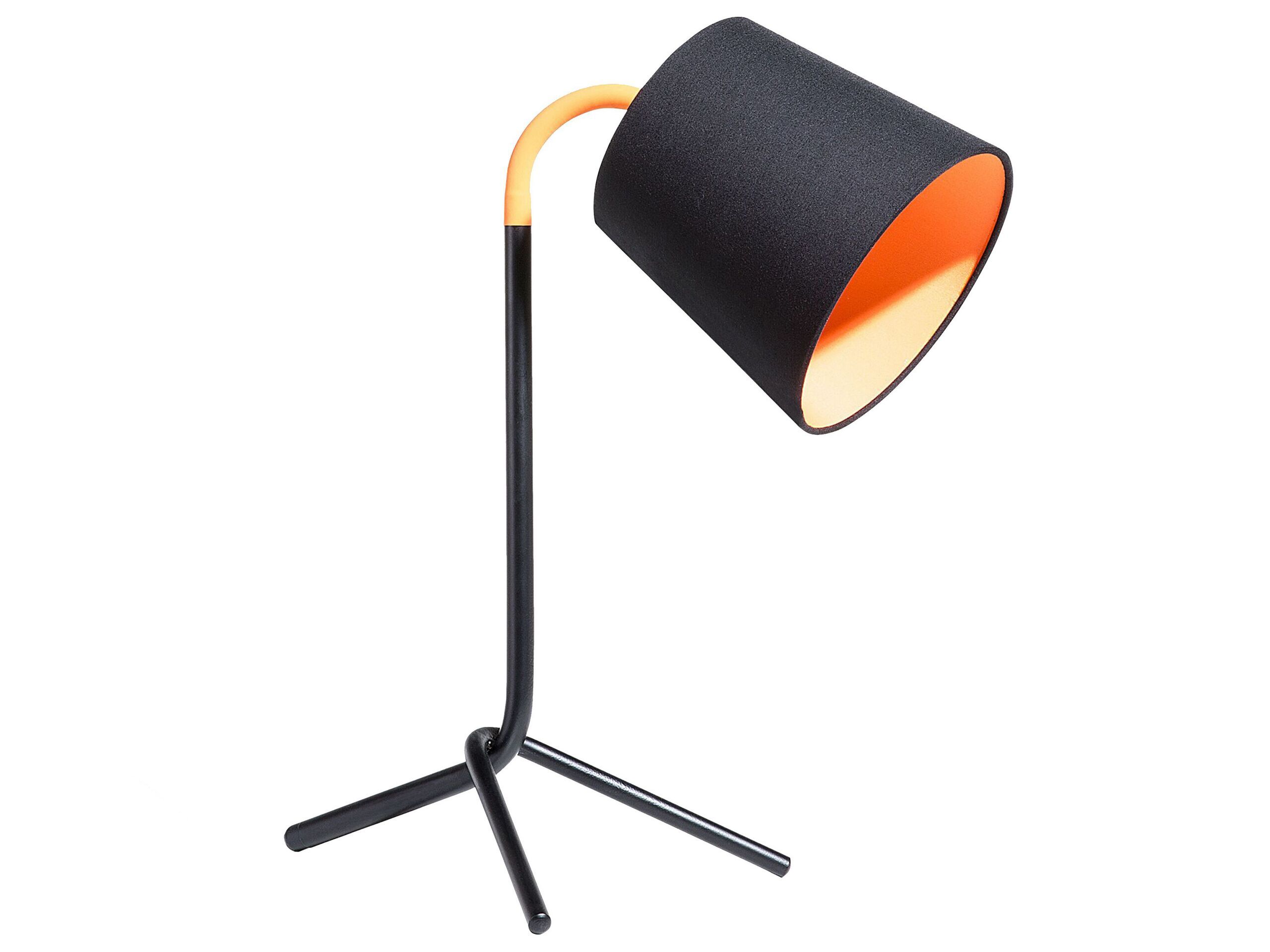 This lamp is a trendy statement piece that will fit perfectly on a desk or on a bedside table as a reading light. Its elegant tripod base is crafted from steel turns orange when it reaches the shade. The lampshade in black colour features poly cotton and its orange-coloured inside provides a warm and pleasant glow. Details: Color: Black, Orange. Main material: Steel. Additional material: Polycotton. Weight: 1 Assembly: Partial Assembly Required