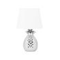 Give your interiors a touch of uniqueness with this fruit-inspired ambient table lamp. This quirky lighting piece will be a perfect addition to any modern, contemporary, or vintage home decor. Crafted from high-quality ceramic, it is highly durable yet stable. Finished in a stylish silver colour, it will match the majority of house styles. The lamp features a textured cone shade in white. Light up your surroundings with this one of a kind pineapple lamp. Details: Color: White, Silver. Main material: Ceramic. Additional material: Polyester. Material Composition: 100% Polyester Weight: 3 Assembly: Partial Assembly Required