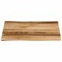 Give a new life to your table with this wooden table top. It is an excellent solution for freshening up your table at home or in a commercial setting. Solid mango wood: Solid mango wood is a strong, tropical hardwood that makes sturdy furniture. Its beautiful wood grains make every piece of furniture slightly different from the next.Versatile applications: The replacement table top can be combined with different bases according to your needs.Live edge design: The wooden furniture top has a rustic live edge. Due to that the knots, cracks, slightly curved shapes, and colour tones are part of the oak wood, and every piece of the shelf has its unique character to display.Easy-to-clean surface: The smooth tabletop is easy to clean with a damp cloth. Good to know:Each item is unique with variations in colours and grains. The delivery is random, ensuring the exclusivity and individuality of your product.