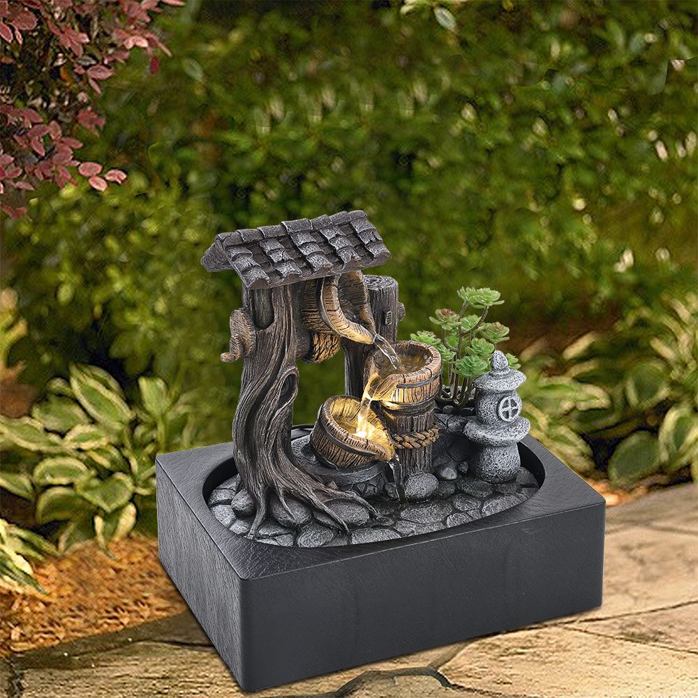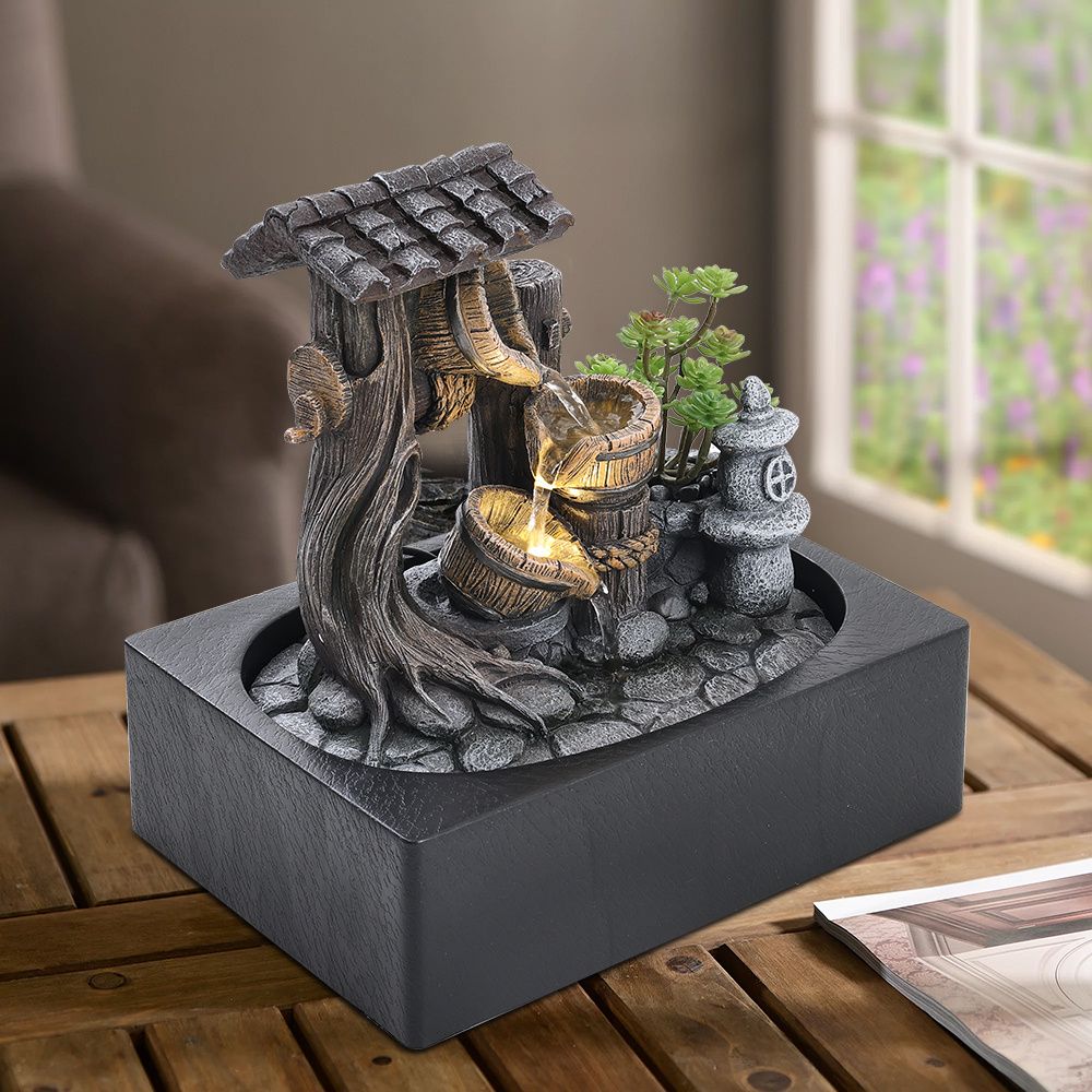 Tabletop Fountain Relaxation Water Feature for Home Office Decor Grey