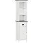 - Modern tallboy design: Something to liven up your bathroom in contemporary style. This bathroom corner cabinet comes in a white colourway, with black accents for a subtly striking look.