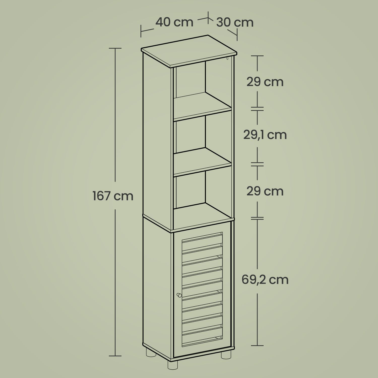 Tall Bathroom Cabinet - MARDA Floor Storage with 3 Open Compartments and Adjustable Shelves - White