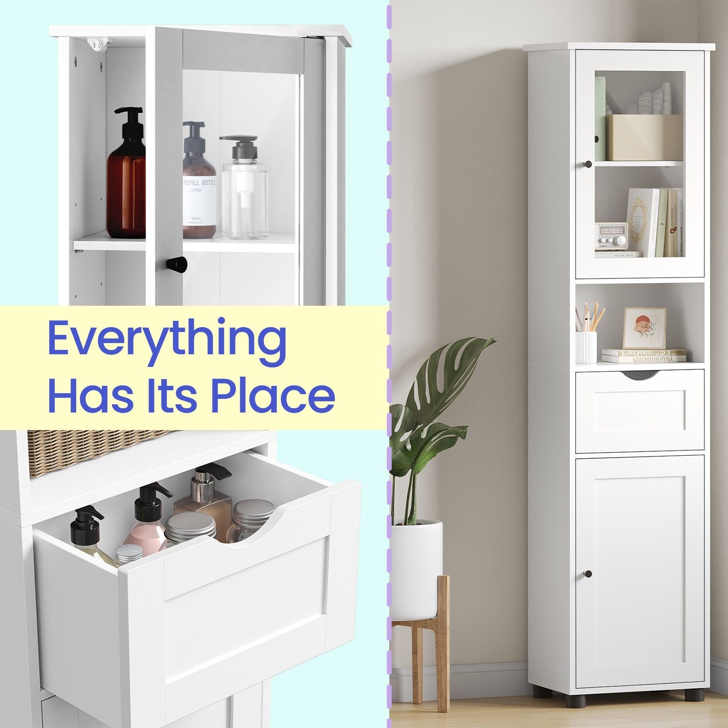 Tall Bathroom Cabinet - MARDA Slim Storage Cupboard Open Shelf - White