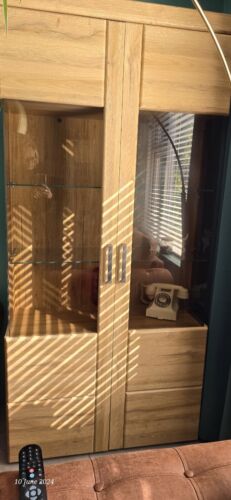 This wide display cabinet features glazing – both in the fronts and sides. It makes the furniture piece unique, light and modern. For the lovers of natural wood, this range offers you the oppotunity to enjoy the charm of wooden furniture at an affordable price. Made from high quality MDF in the colour of grandson oak, which looks just like natural timber. An additional feature is the beautiful antique metal handles which gives a timeless elegance to the collection.