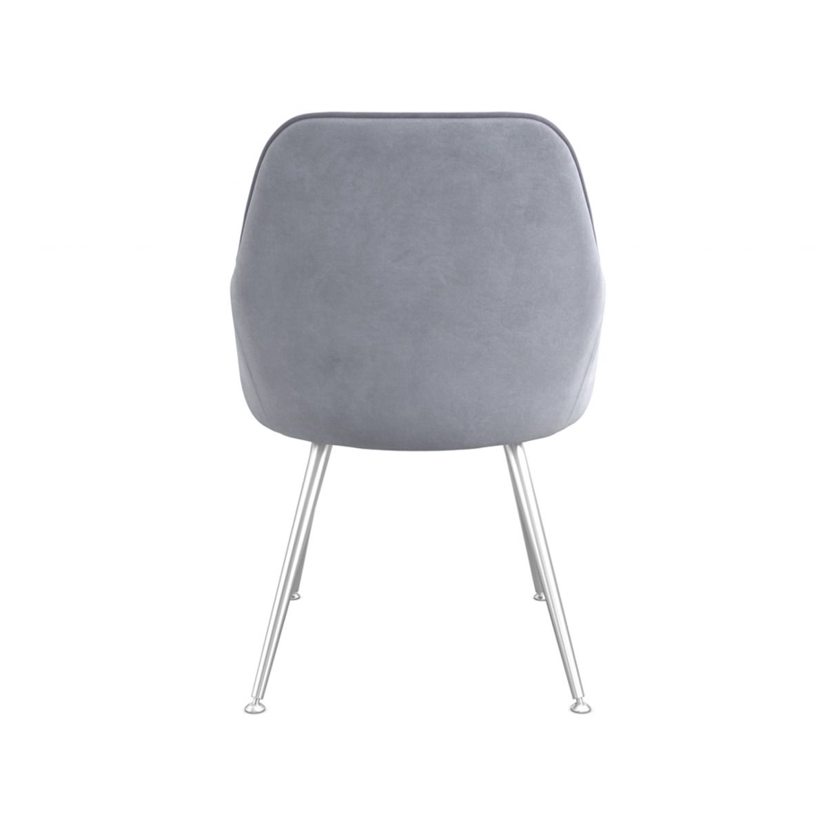 Introducing the Tara Grey Dining Chair, a stylish choice for your dining area. Sold in packs of two, these chairs feature plush velvet upholstery in a versatile grey hue, accented by sleek silver metal legs. Keep them looking pristine with a simple clean using a damp cloth or soft brush. Partially assembled for your convenience, these chairs offer both elegance and ease. Explore our wide range of furniture and decor at "Home Done"!