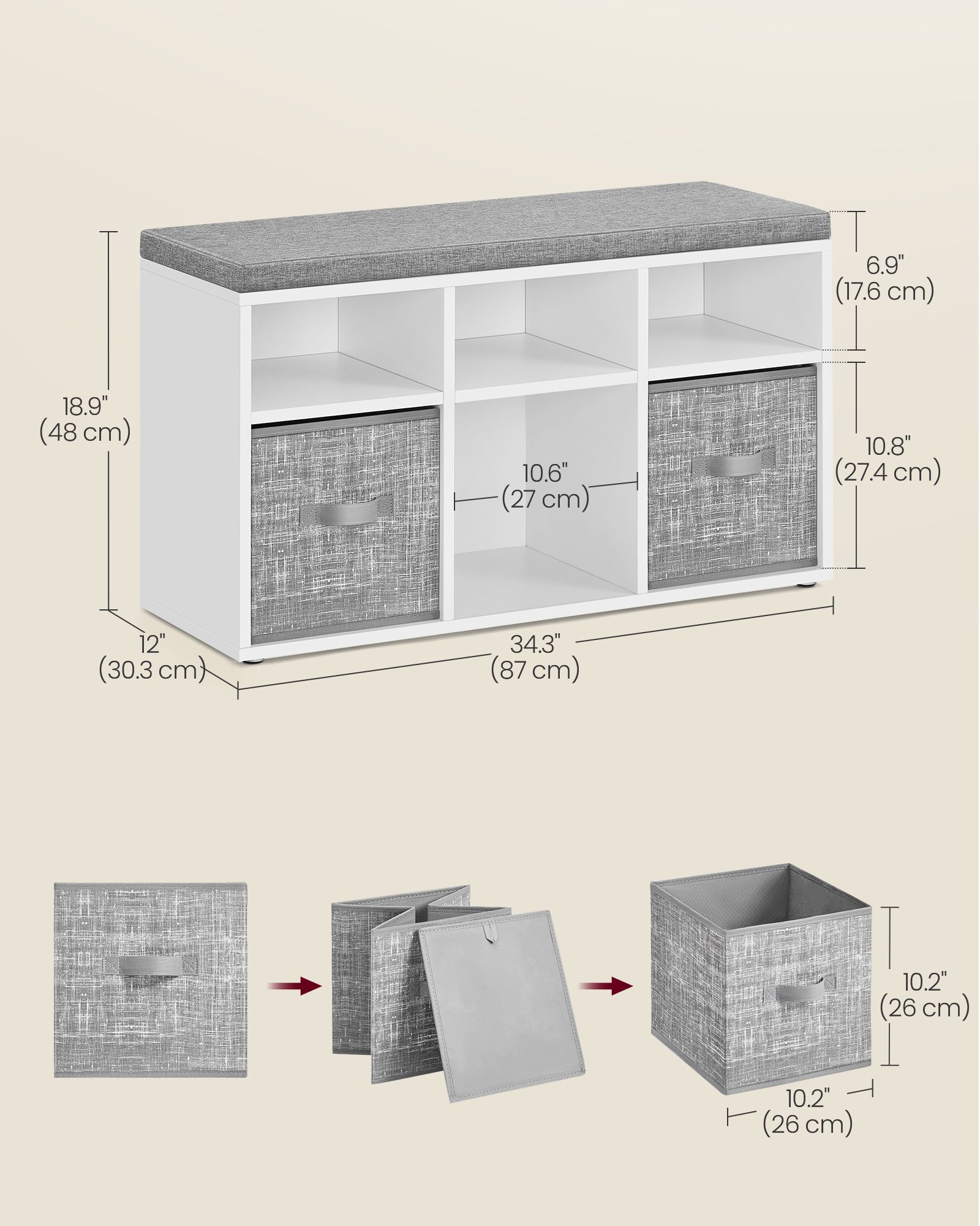 TARDA Shoe Bench - 6 Compartment 3 Box Cushion Seat Medium Sized Bench - Cloud White