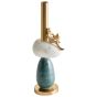 Crafted from steel and marble, this elegant candle holder showcases a harmonious balance of strength and artistry. The contrasting green and white marble elements form a sculptural base, crowned with a sleek golden stem. A small golden figure adds a playful yet refined detail, making it both decorative and distinctive. Perfect for creating a warm, stylish atmosphere in any room.