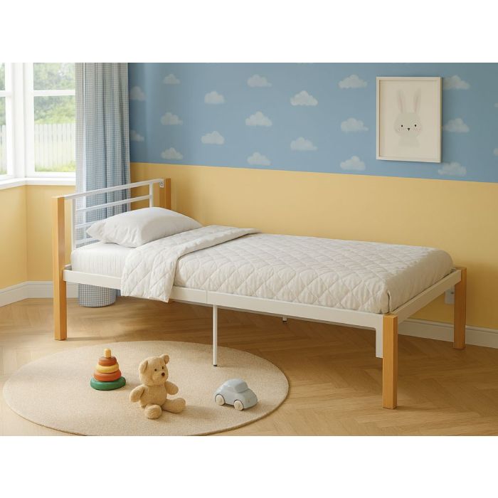 Make bedtime a breeze with this charming white bed frame, designed especially for kids and busy parents. This bed has wooden effect posts and a bright white finish, and adds a touch of magic to any child’s room. Best of all? No bolts required! That means easy, tool-free setup-just snap, slot, and snooze.
