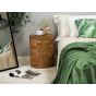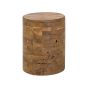 The weathered wood look of this cylinder-shaped table makes it a perfect match to a rustic or vintage-inspired home décor. Crafted from recycled teak wood, it is eco-friendly and features a nice glossy lacquer finish. Place it by your bedside as an unusual nightstand or use it as a plant stand in a living room. Details: Color: Light Wood, Dark Wood. Main material: Teak Wood. Additional material: Teak Wood. Weight: 13 Assembly: Does Not Require Assembly Wood type: Tectona grandis Wood Origin: Indonesia Weight Capacity: 100