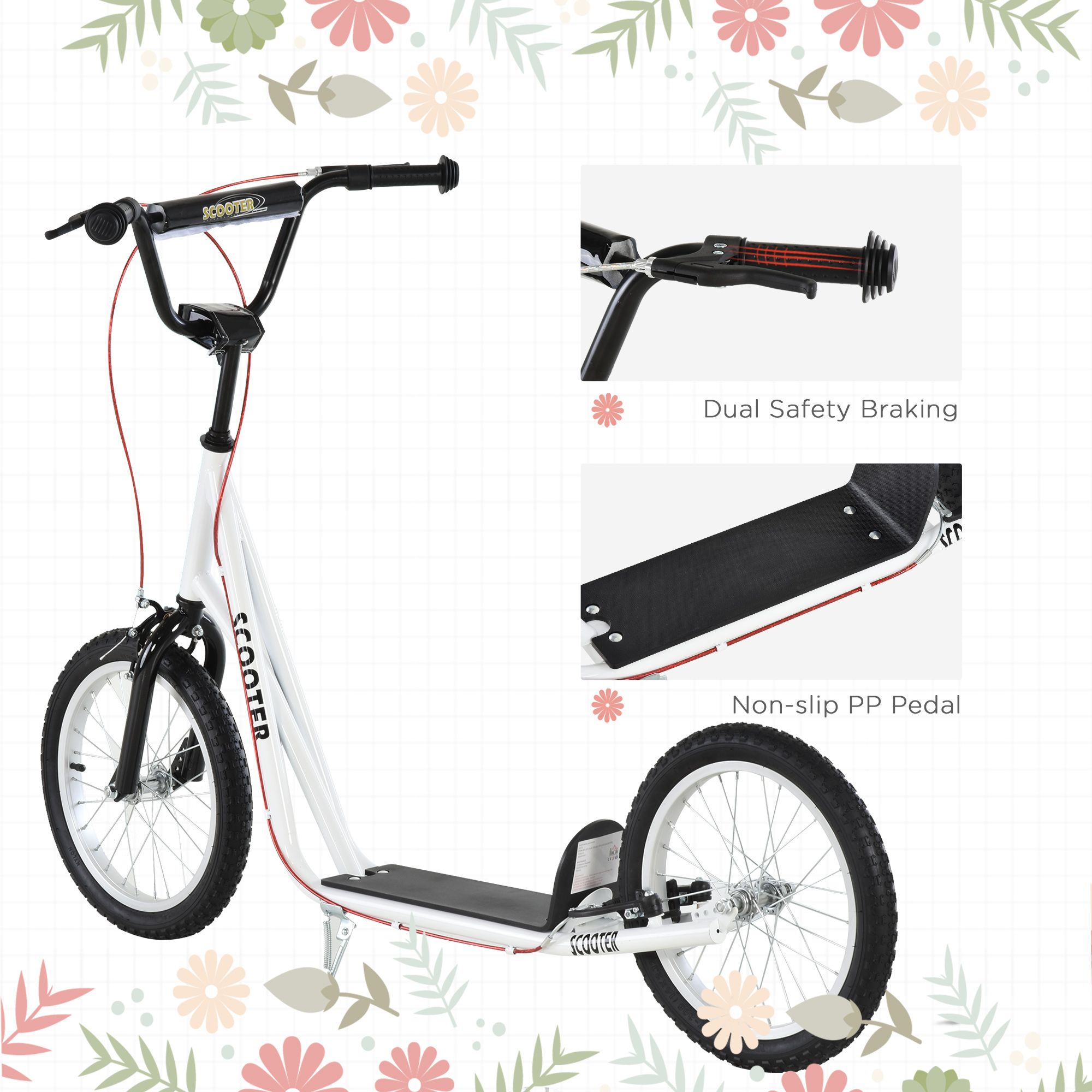 Teen Kids Stunt Scooter Children Kick Scooter Adjustable Handlebar 2 Brakes Ride On 16 Inch Rubber Tyres White