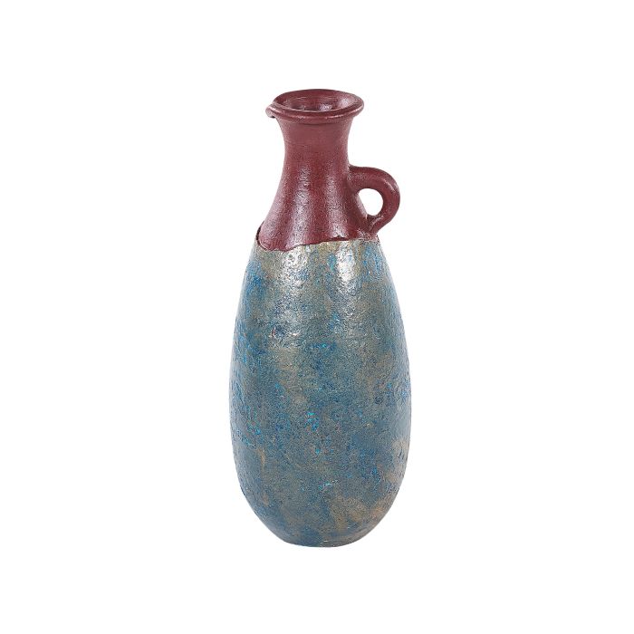 This handcrafted from a high-quality terracotta vase is a one-of-a-kind decoration that will bring a rustic and charming touch to your home décor. This decoration features a distressed effect, giving it an aged and weathered feel that will introduce a unique character to your living room or bedroom. Use it as a standalone piece or mix and match other products to create a cohesive look. Details: Color: Blue, Brown. Main material: Terracotta. Weight: 4.6 Assembly: Does Not Require Assembly