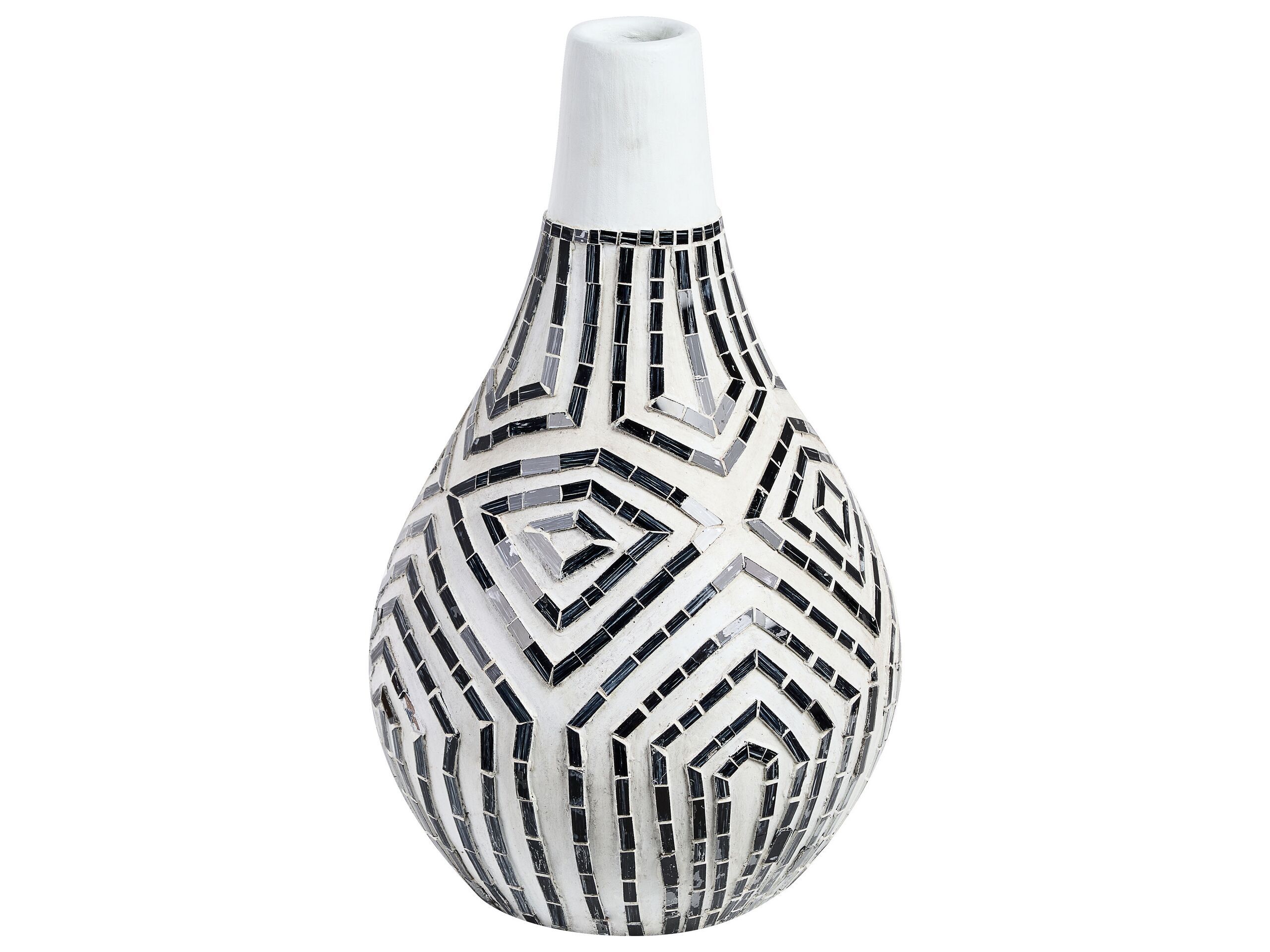 The classic combination of black and white colour gives this vase a timeless look. It is made from terracotta and decorated with glass pieces arranged into an intriguing geometric pattern that create a vintage feel. Quite tall, it can be styled directly on a floor or on a sideboard. Details: Color: White, Black. Main material: Terracotta. Weight: 4.4 Assembly: Does Not Require Assembly