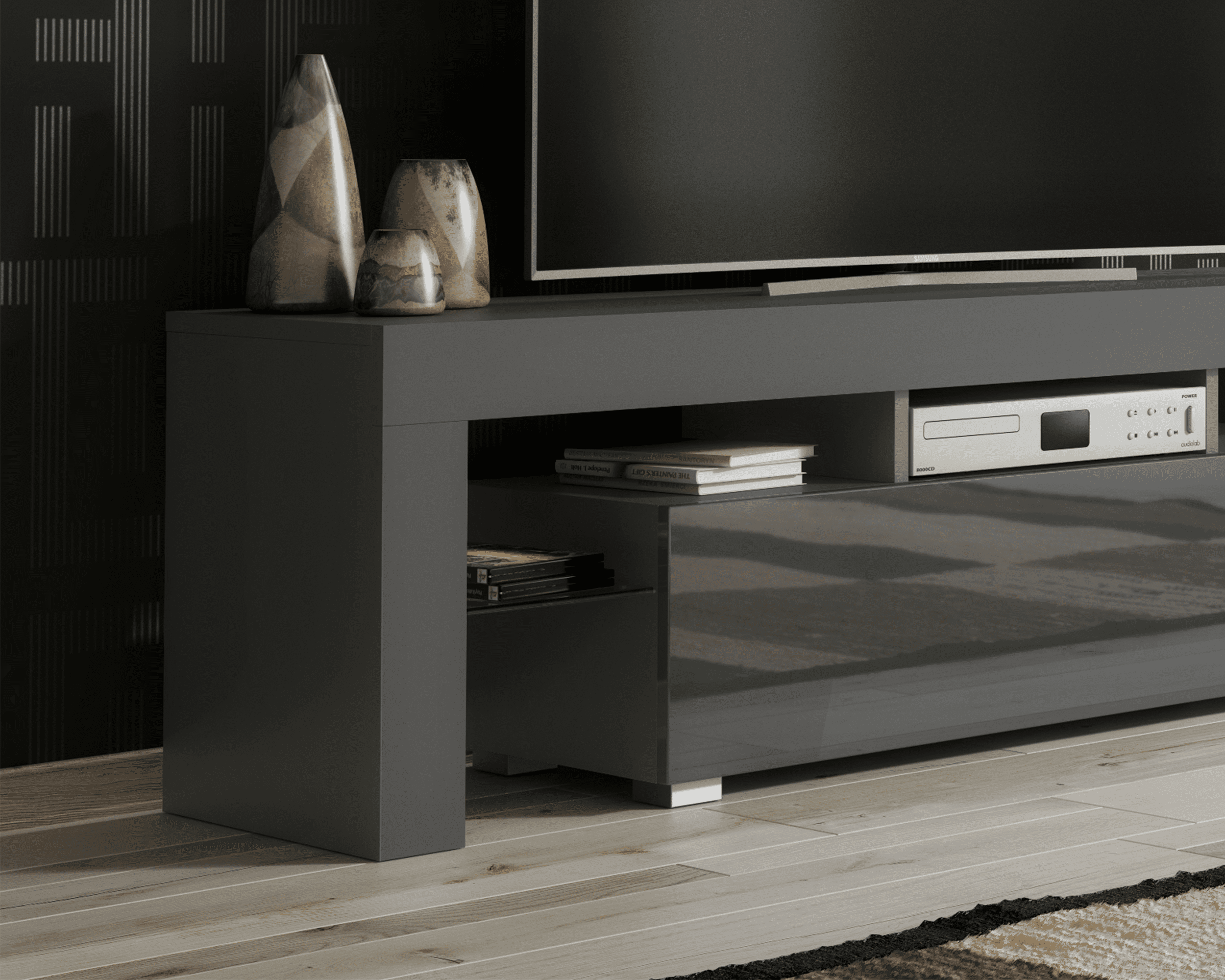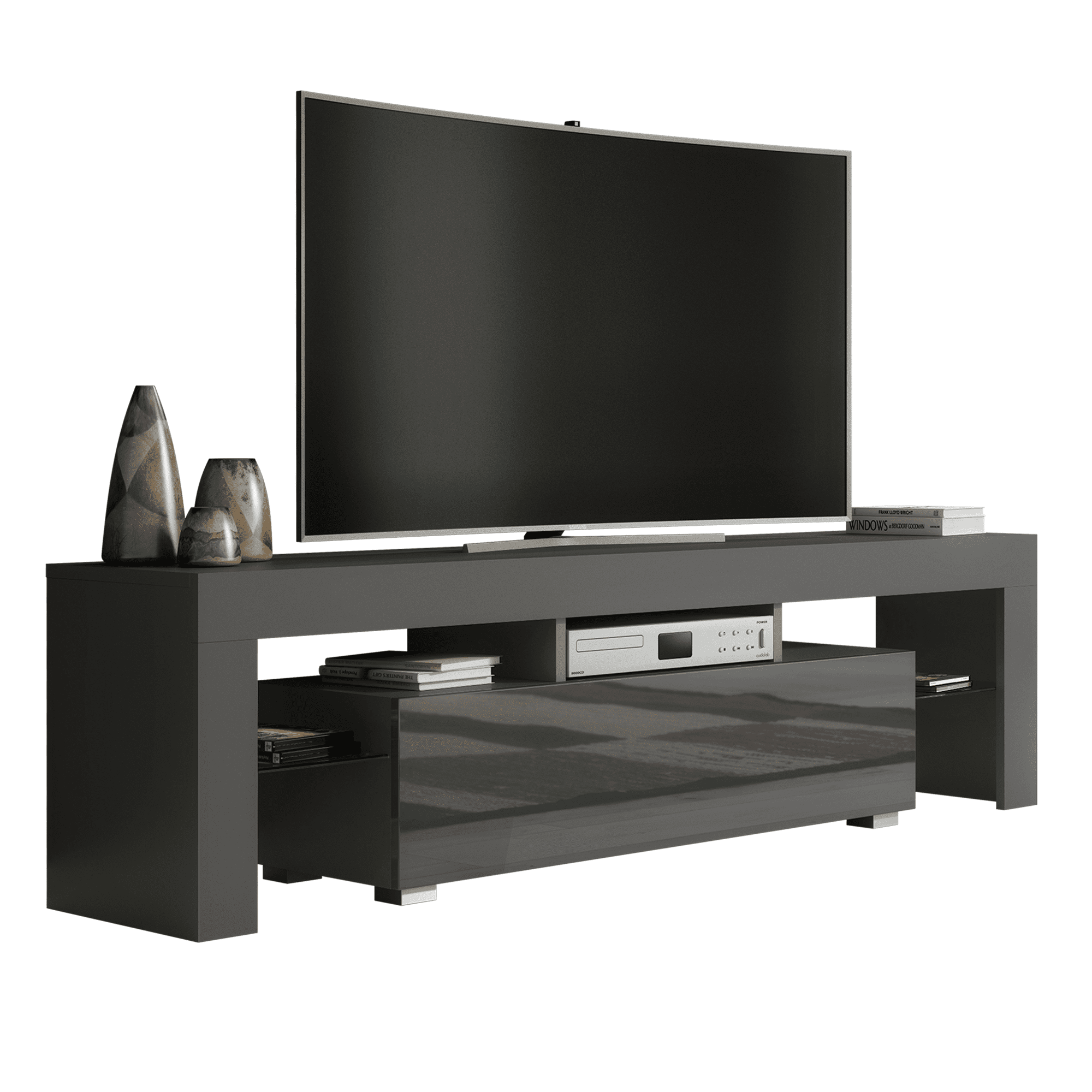 TERVIS Modern TV Unit Cabinet Stylish Sideboard with High Gloss Doors 160cm - Grey