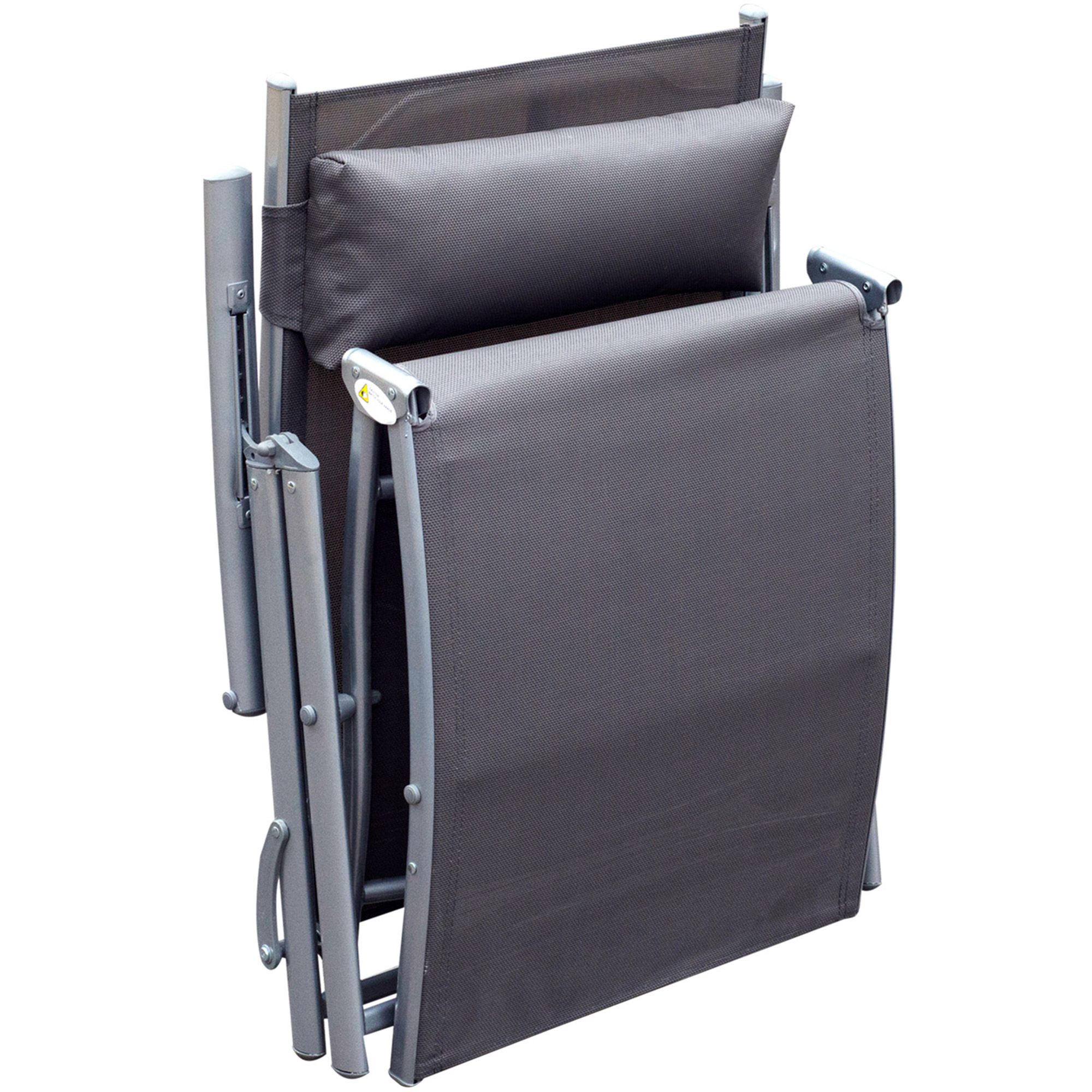 Texteline Sun Lounger Recliner Chair Patio Foldable Garden 5 Levels Grey