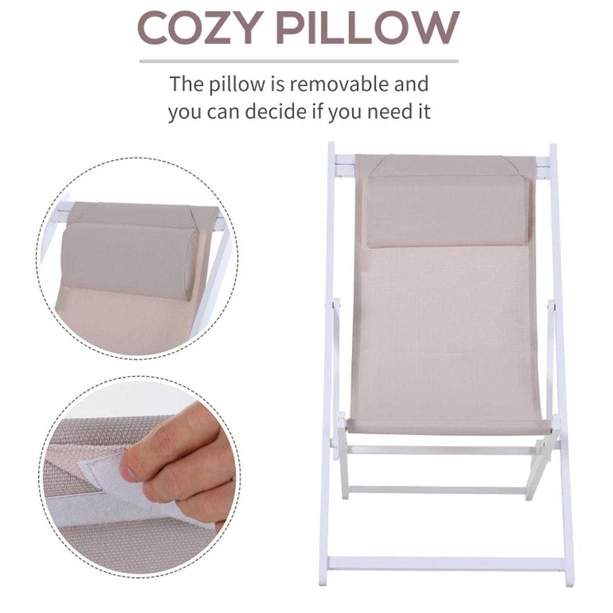 Textilene Adjustable Chaise Lounge Recliner Sun Lounger - White