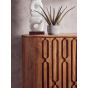 Stylish and functional, the THALMERYN mango wood cabinet boast elegant wood carving on its two doors.