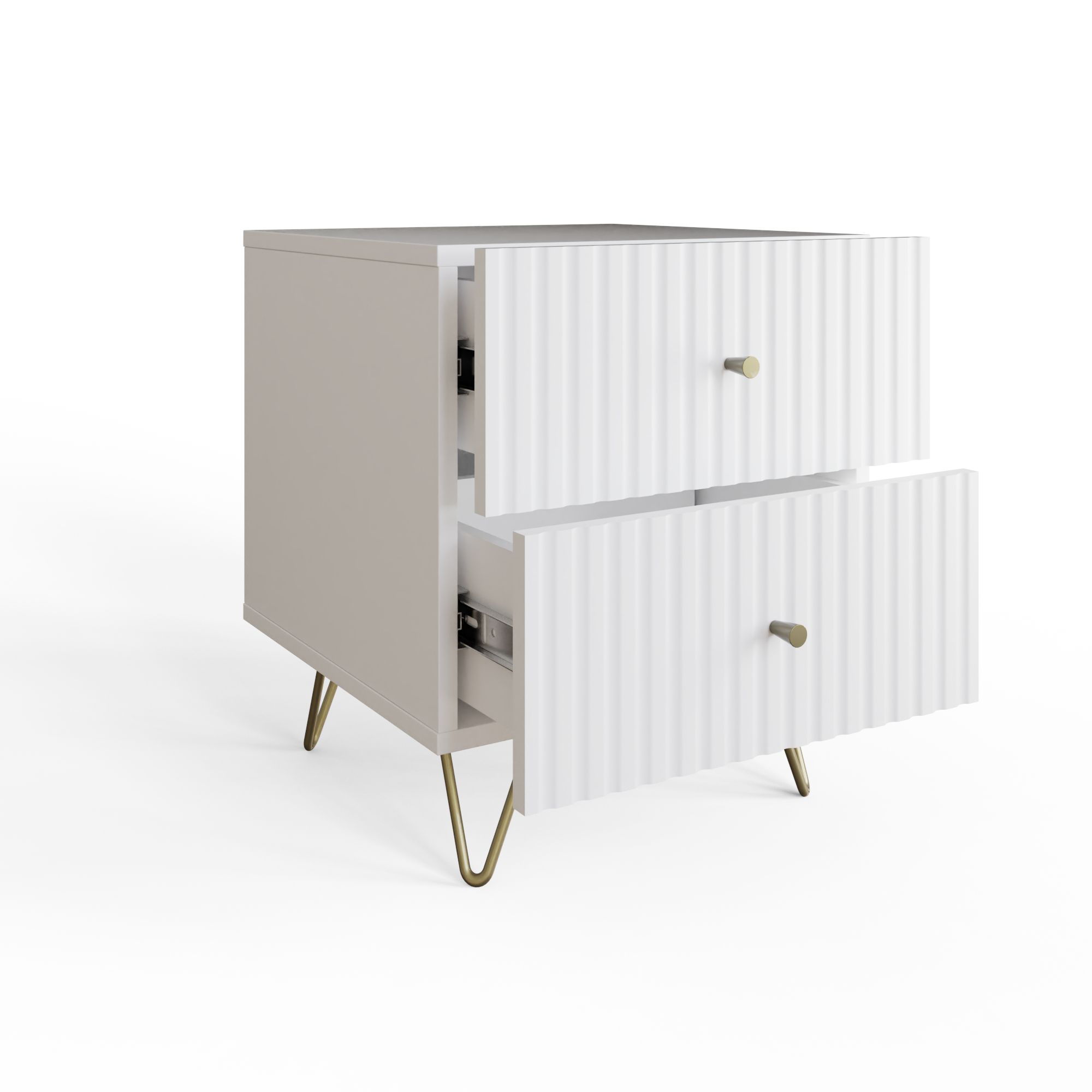 THARO 2 Drawer Bedside Table with Sleek Finish - White